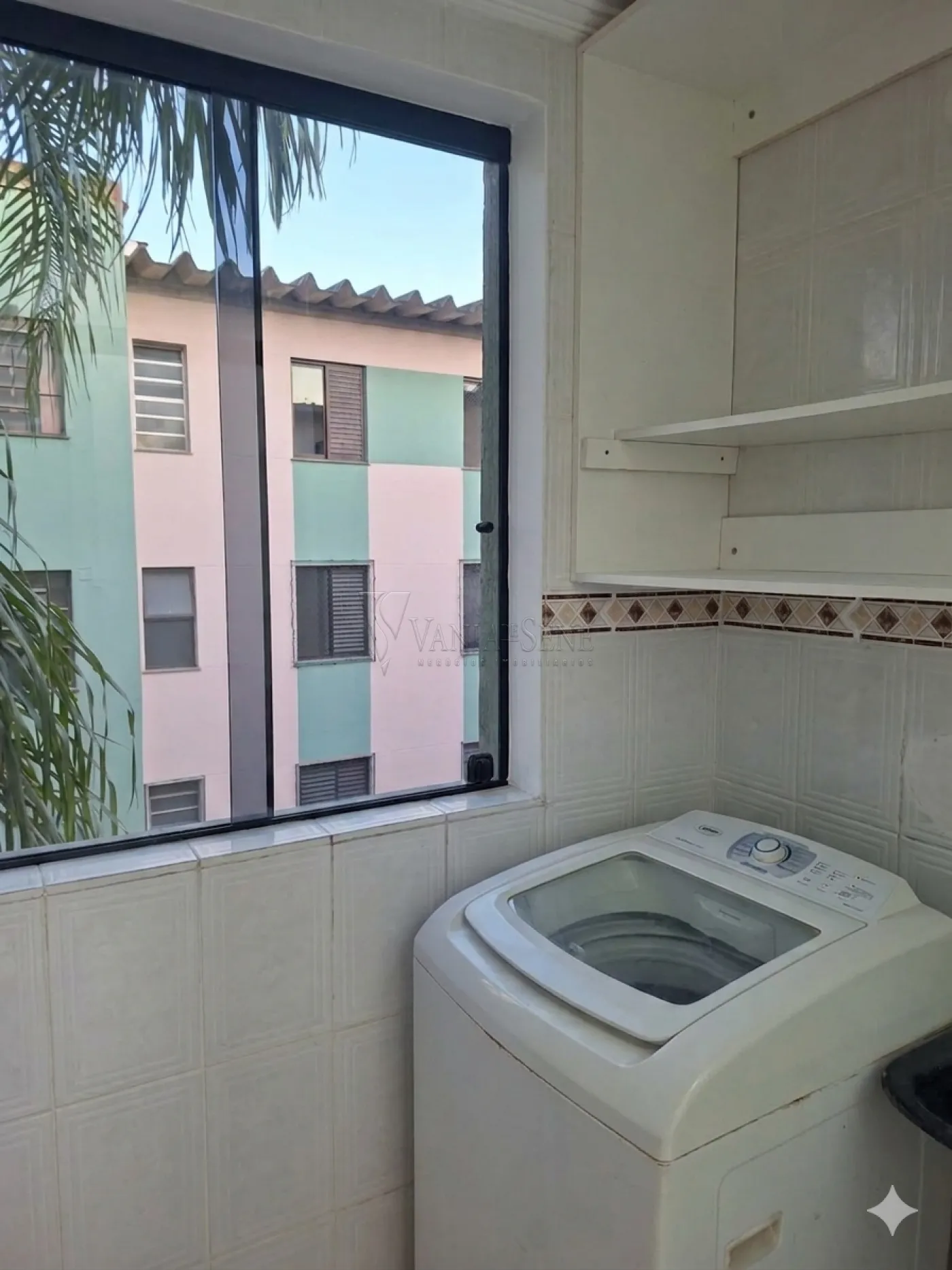 - Área de serviço com armários e máquina de lavar