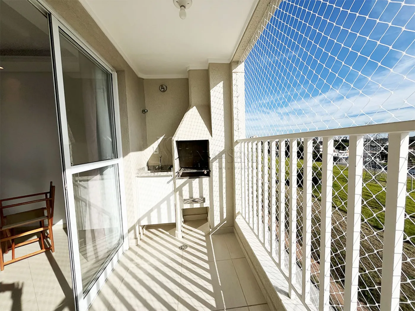- A varanda conta com uma linda vista livre para uma área verde e parte da cidade, além de ser ampla e contar com tela de proteção.