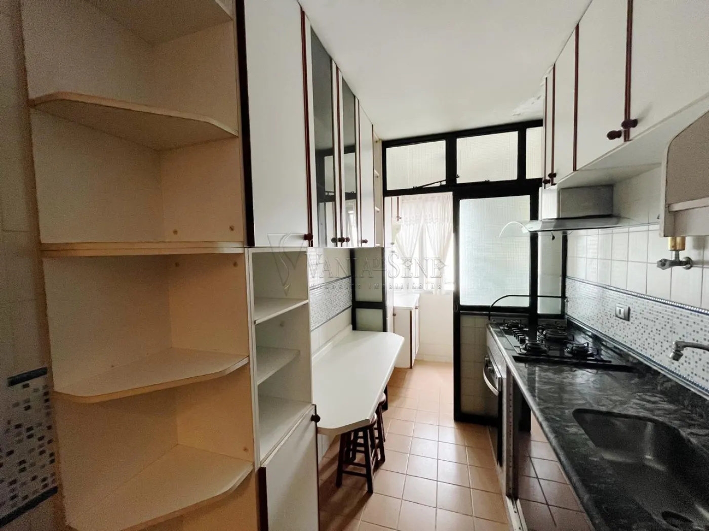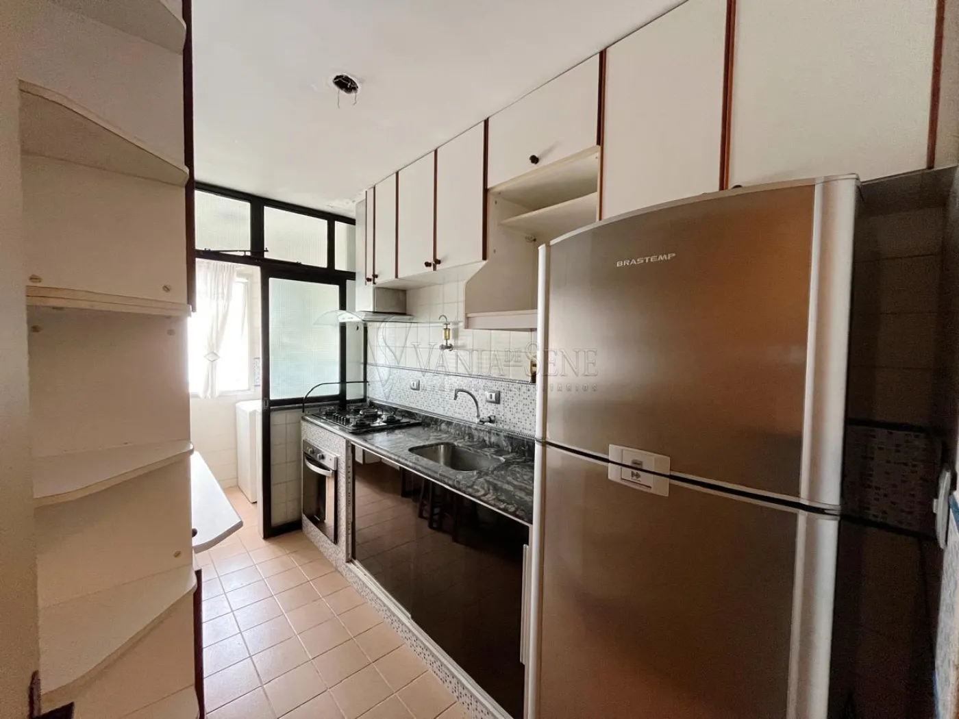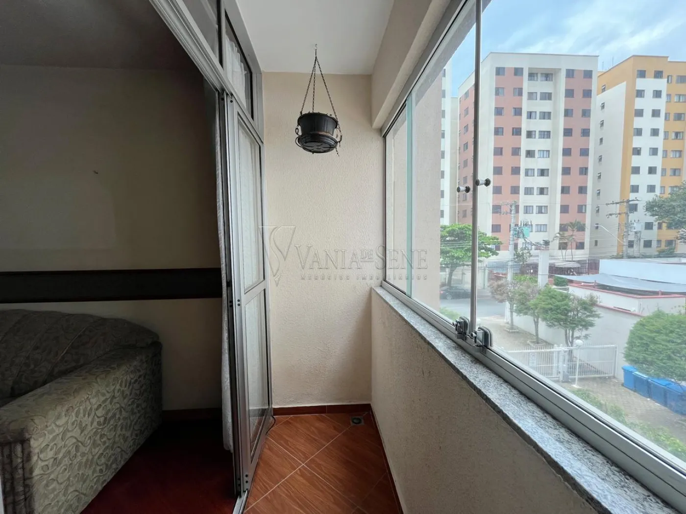 O imóvel conta com 2 quartos, 1 banheiro social, sala de estar com sacada, cozinha com armários, área de serviço e box blindex no banheiro. Possui 1 vaga de garagem coberta.