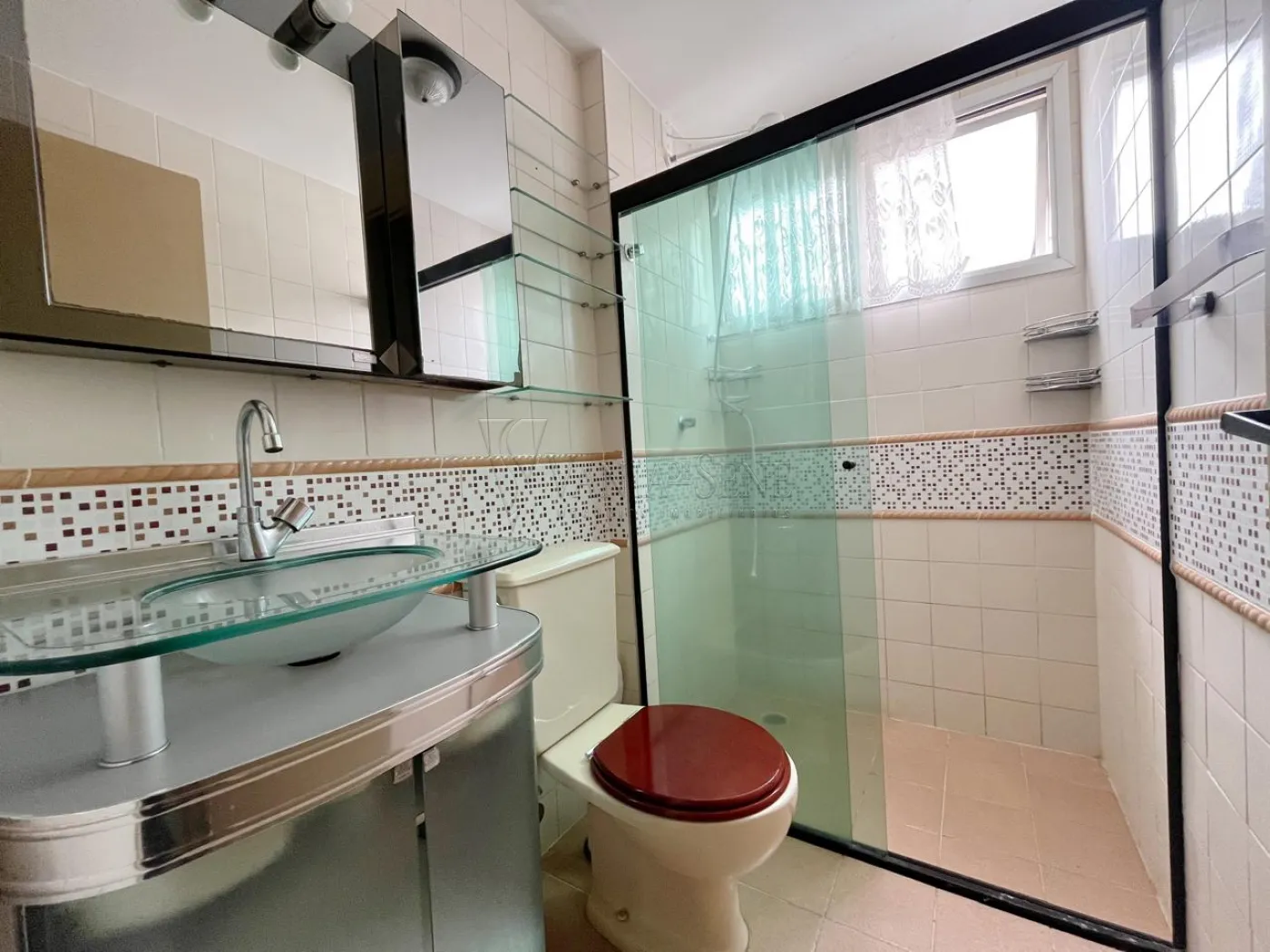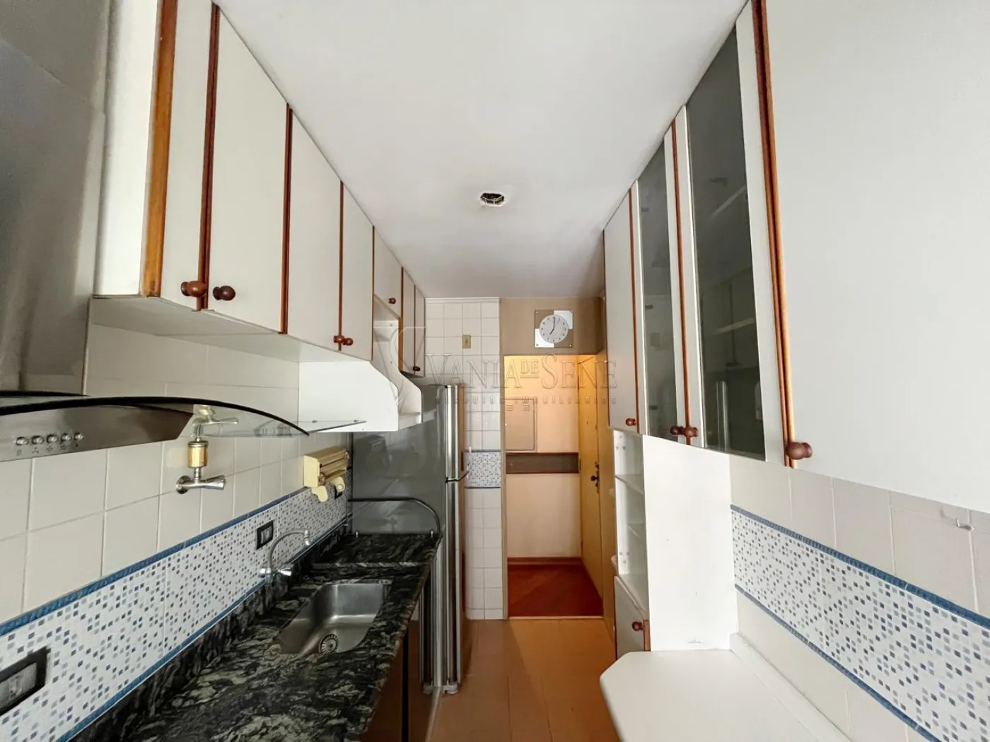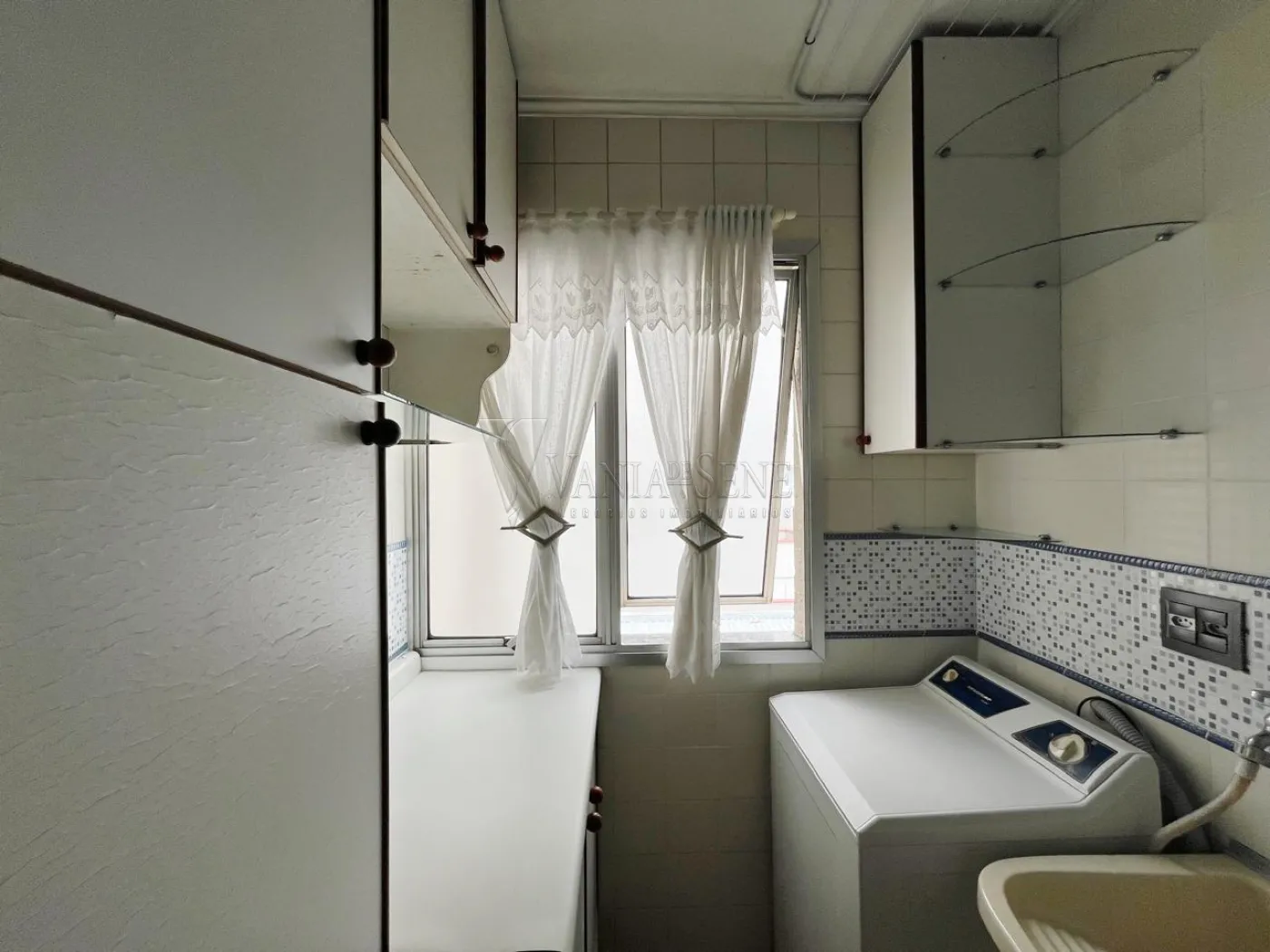 O imóvel conta com 2 quartos, 1 banheiro social, sala de estar com sacada, cozinha com armários, área de serviço e box blindex no banheiro. Possui 1 vaga de garagem coberta.