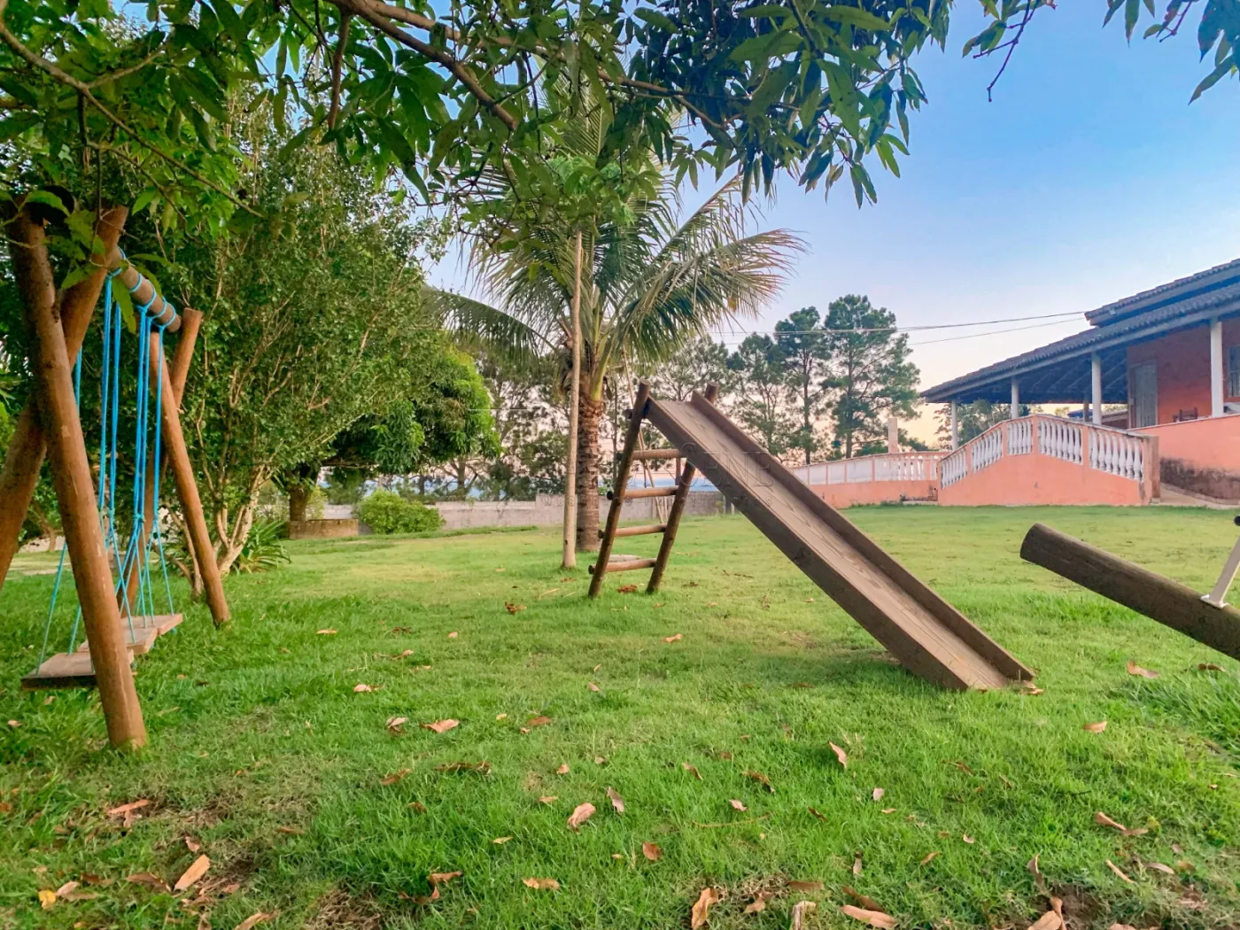 - Parquinho de eucalipto para crianças: balanço, escorregador e gangorra