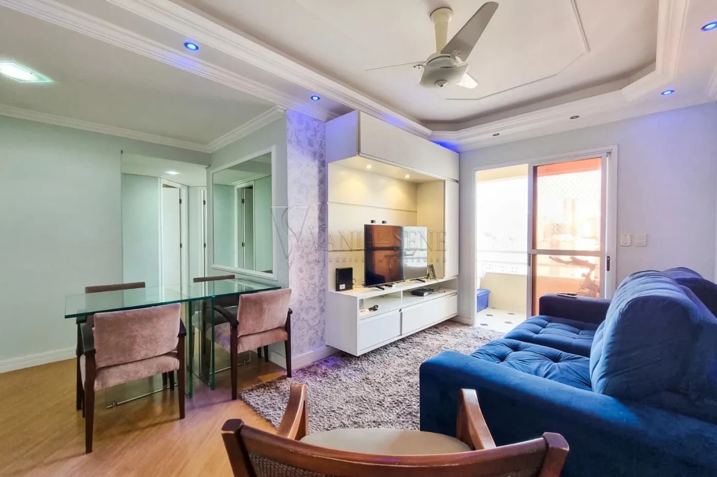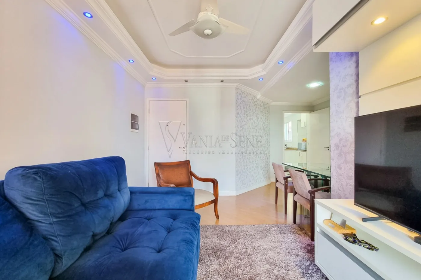 - Sala ampla com teto rebaixado e iluminação