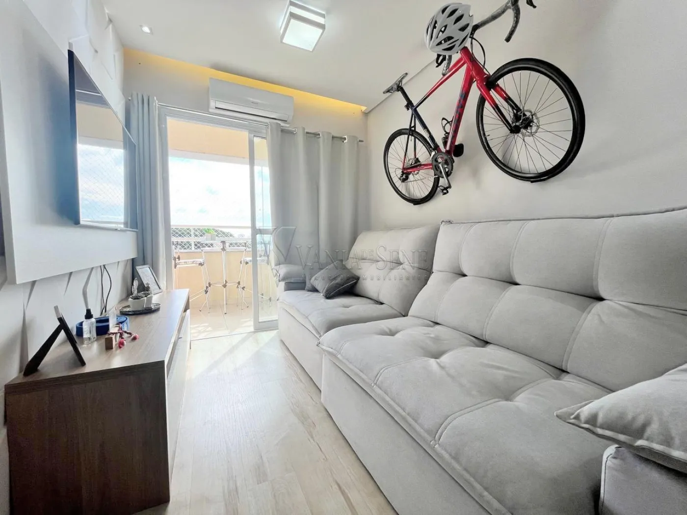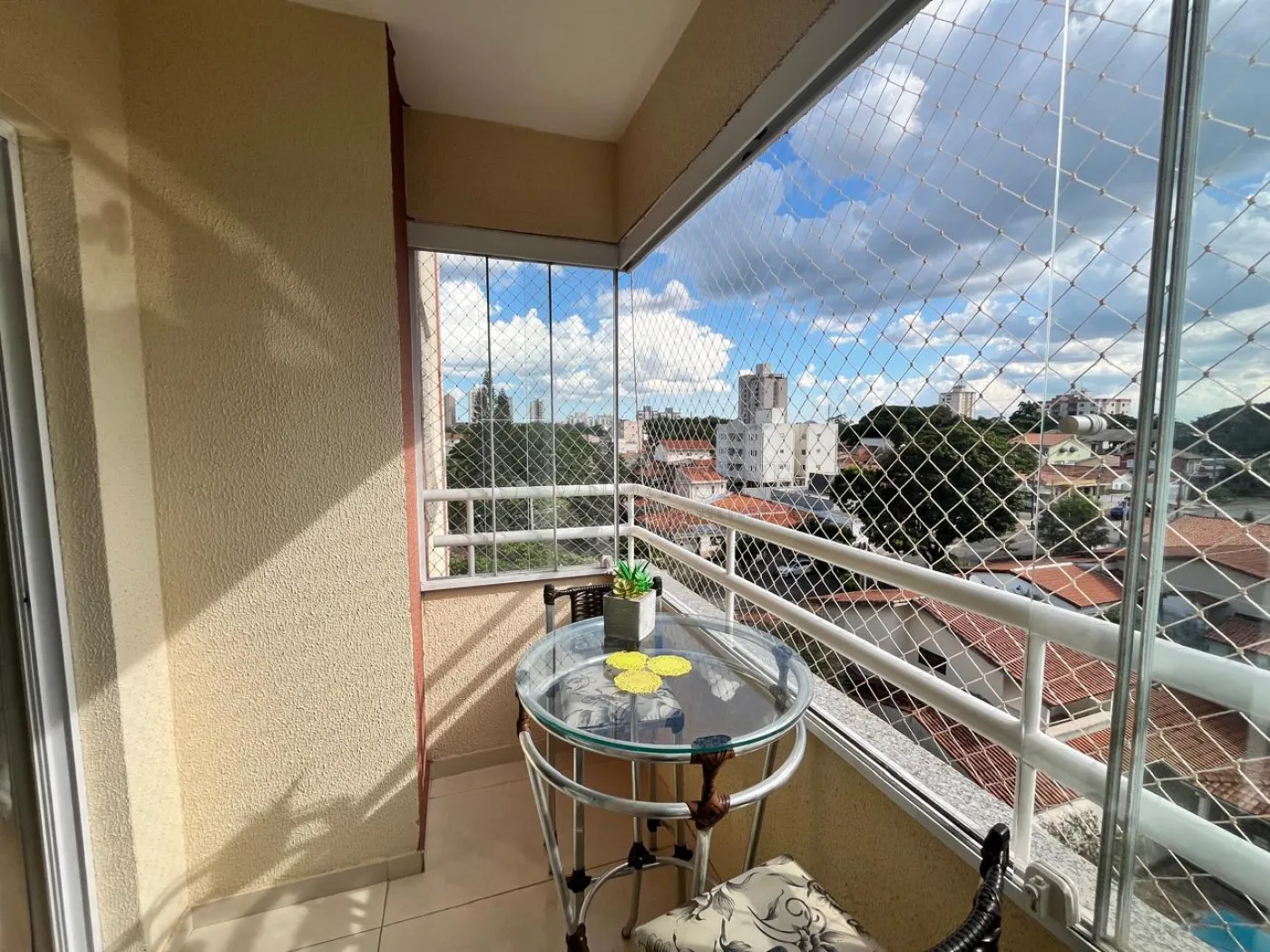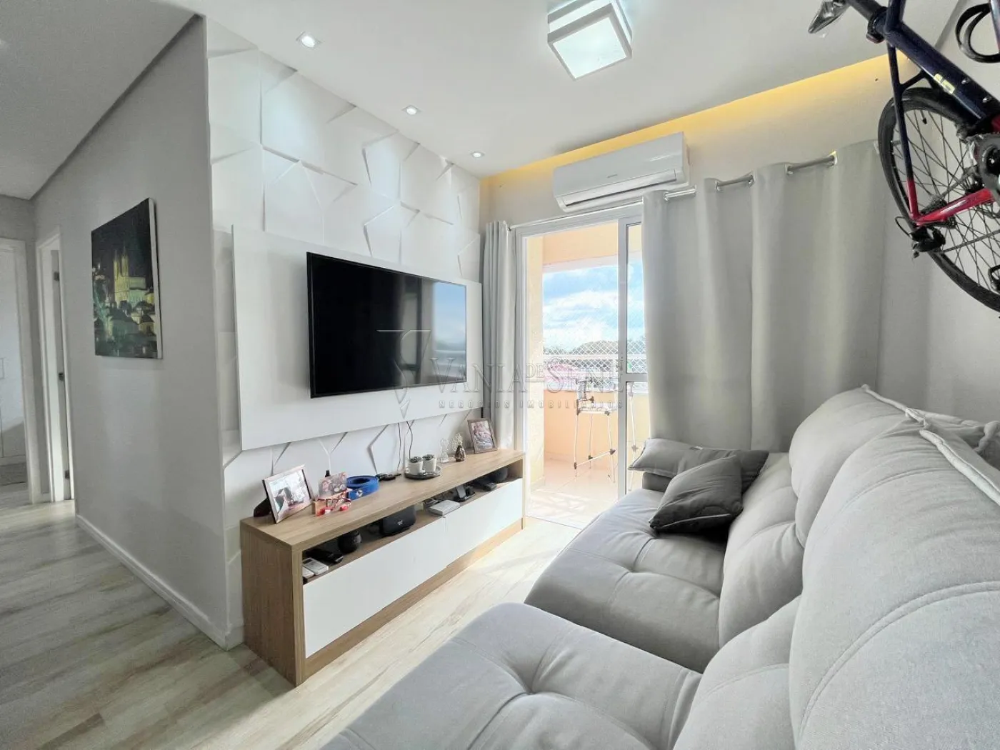 - Sala de Estar: Aconchegante, com sacada fechada em vidro, proporcionando um ambiente iluminado e arejado