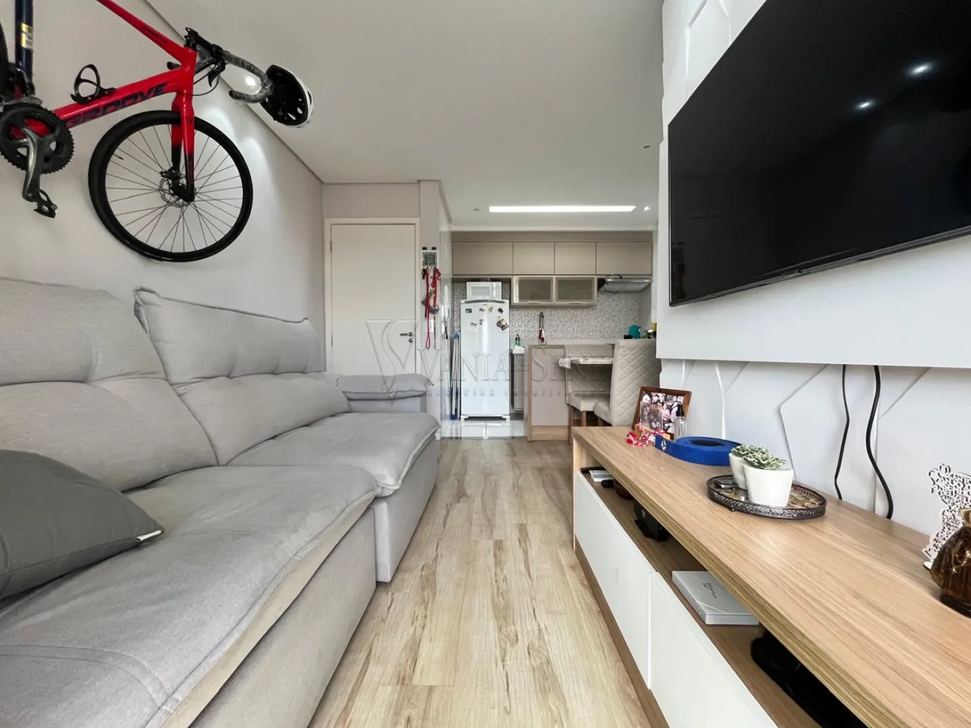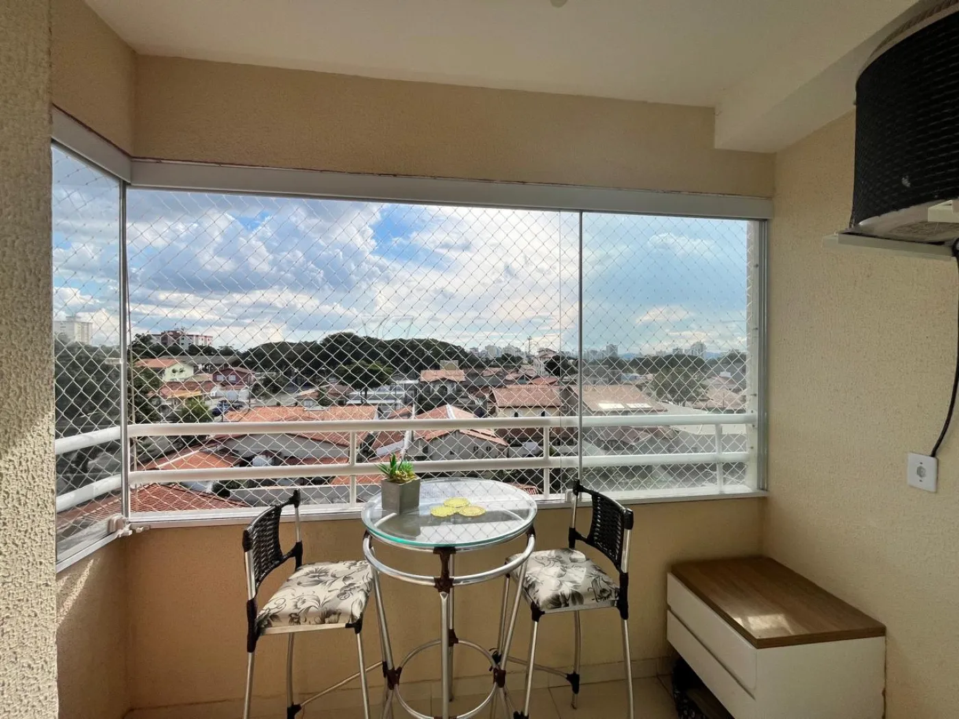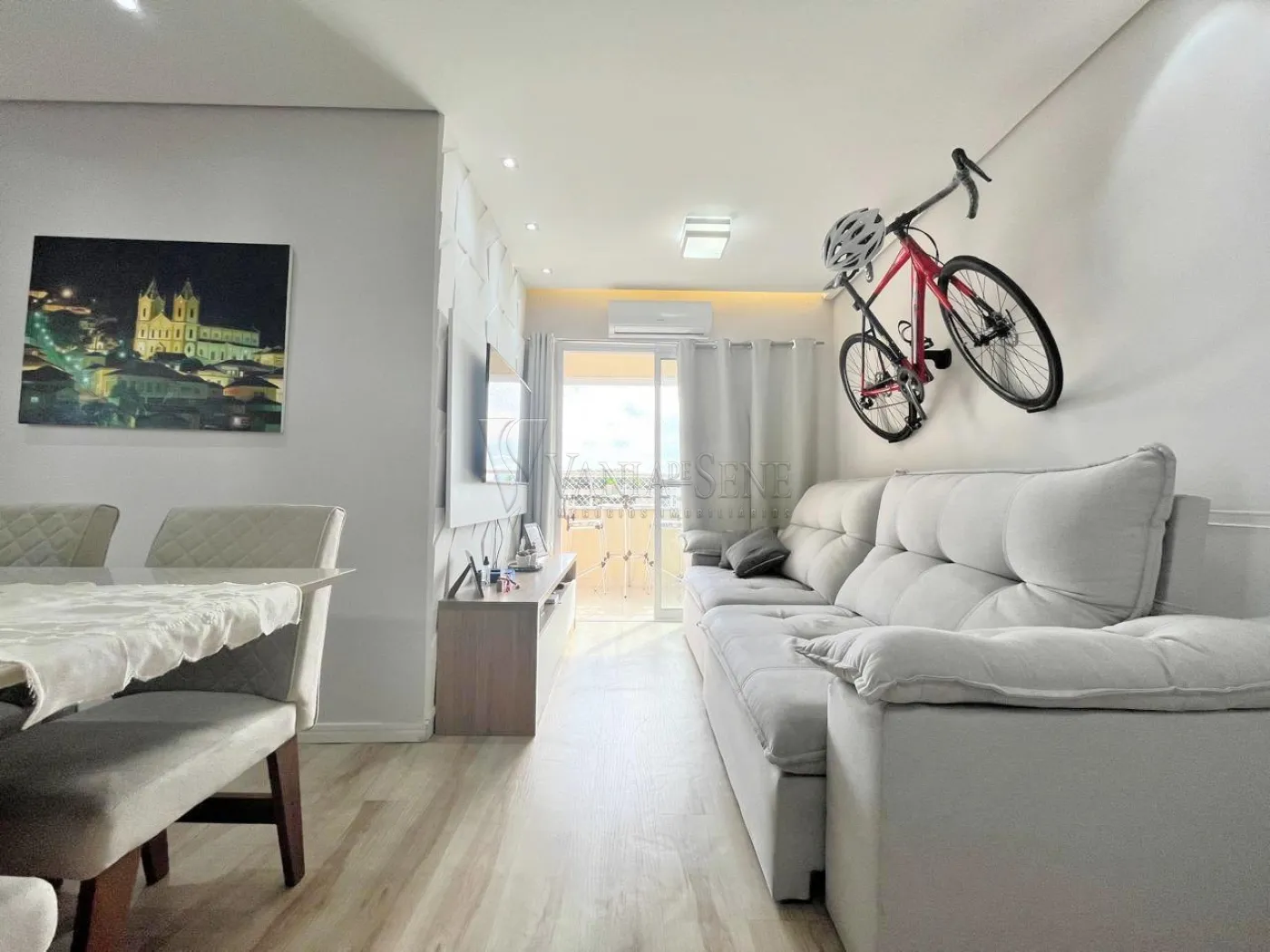 - Sala de Estar: Aconchegante, com sacada fechada em vidro, proporcionando um ambiente iluminado e arejado