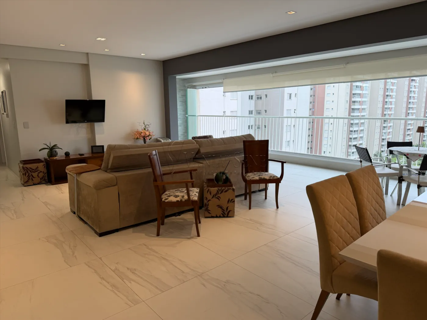 - Sala ampliada integrada à sacada, proporcionando um ambiente arejado e convidativo.