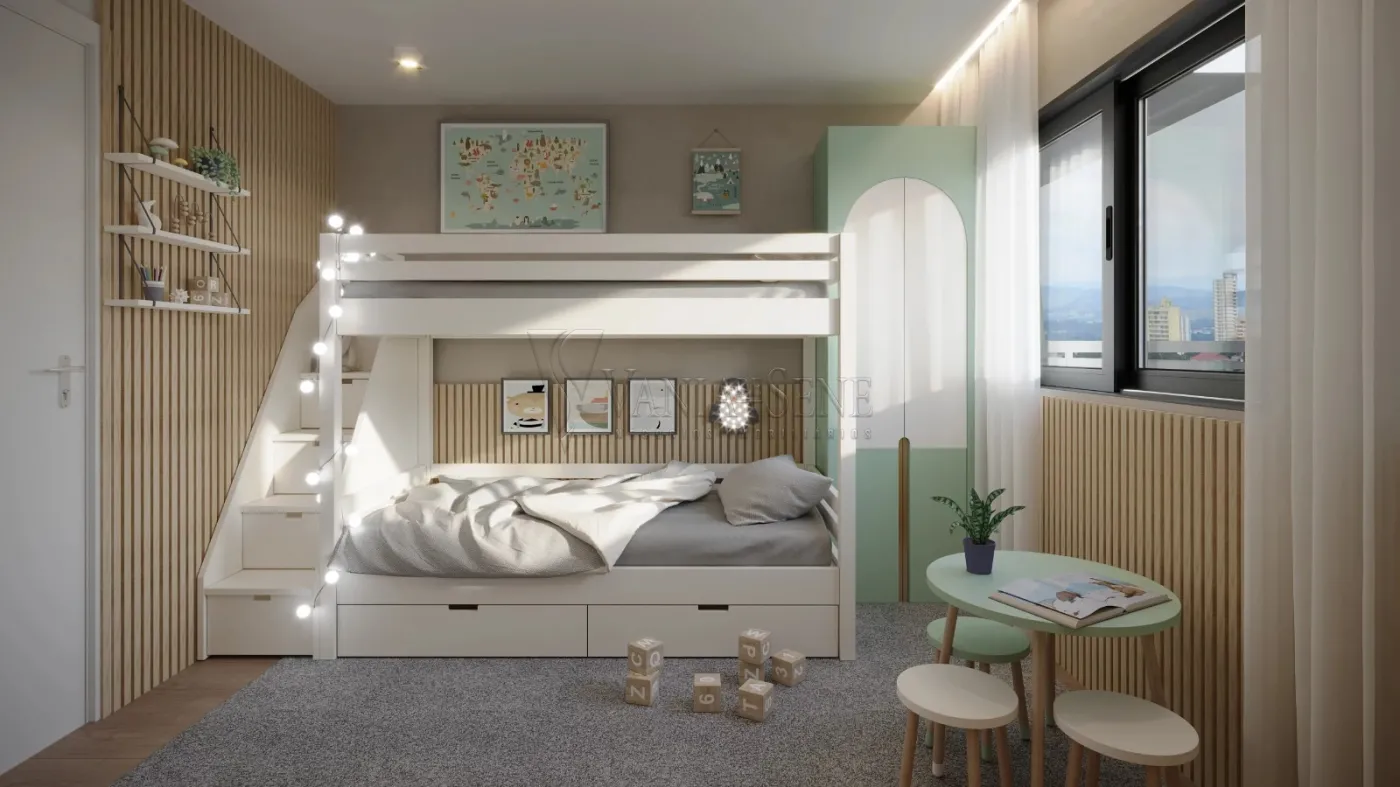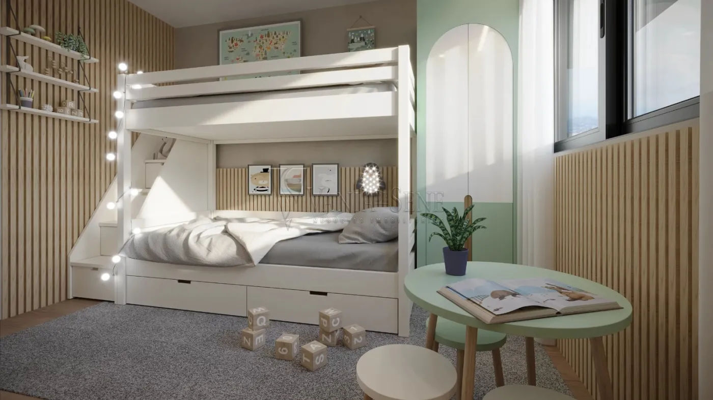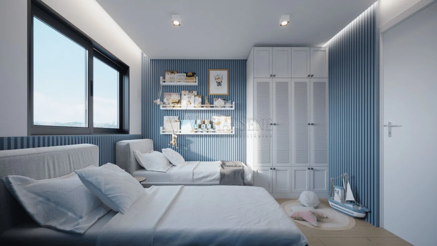 - Dois Dormitórios: O apartamento conta com dois quartos bem iluminados e arejados, sendo uma suíte, perfeita para proporcionar privacidade e conforto ao casal. O segundo quarto é ideal para crianças, hóspedes ou até mesmo para ser utilizado como home office.