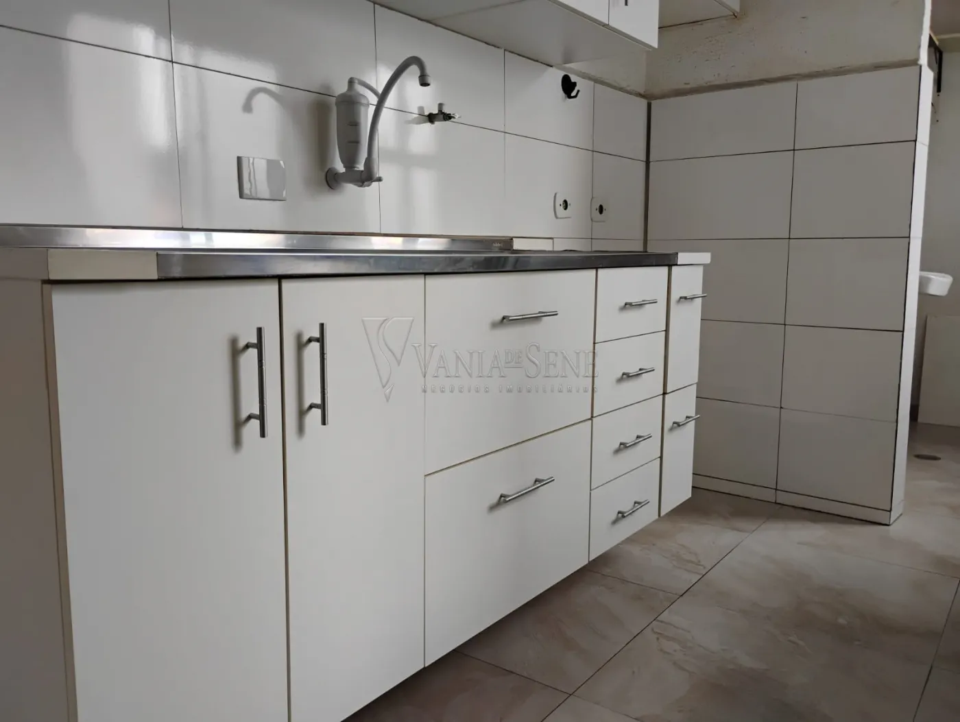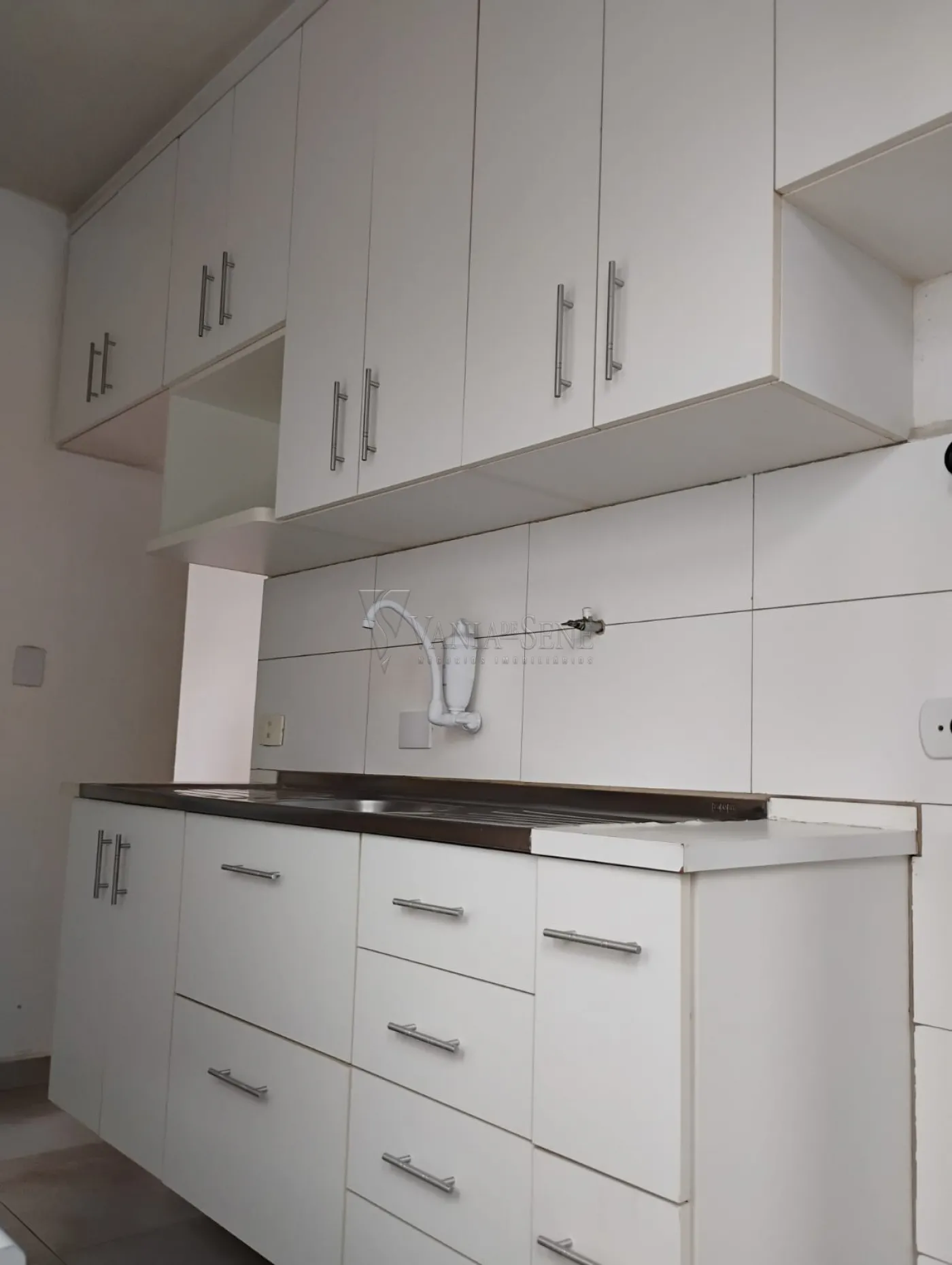 O apartamento conta com cozinha equipada com armários, portaria 24 horas, uma quadra poliesportiva, salão de festas e parquinho.