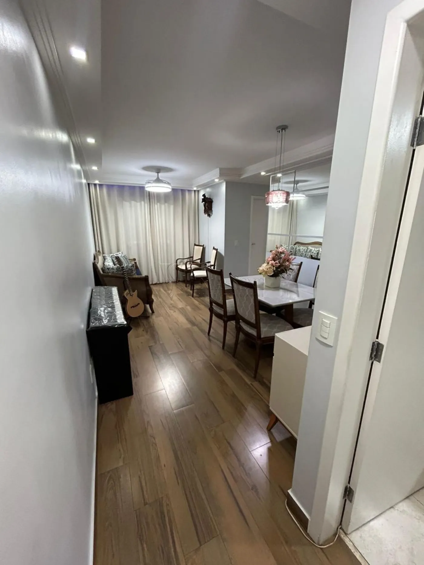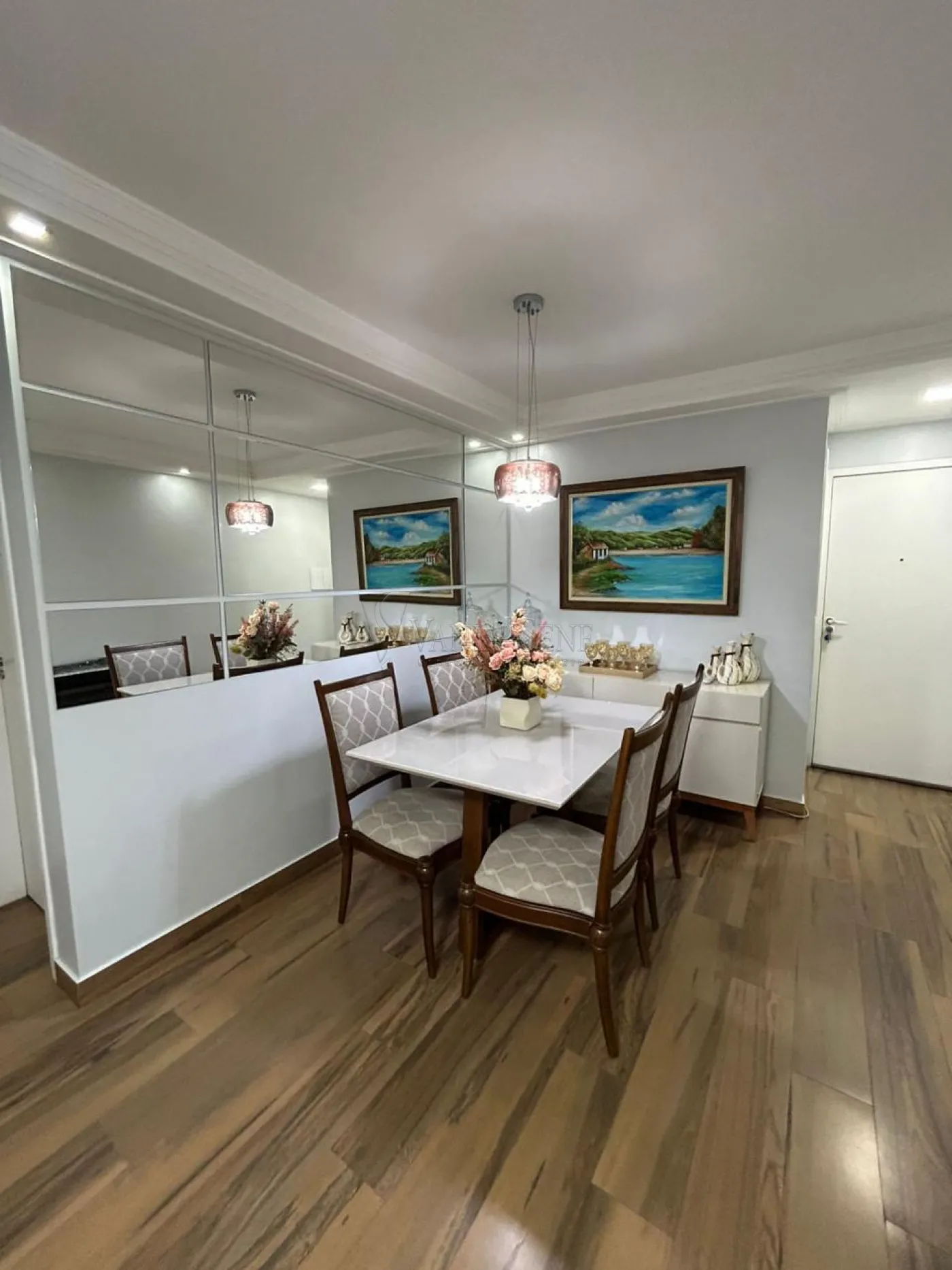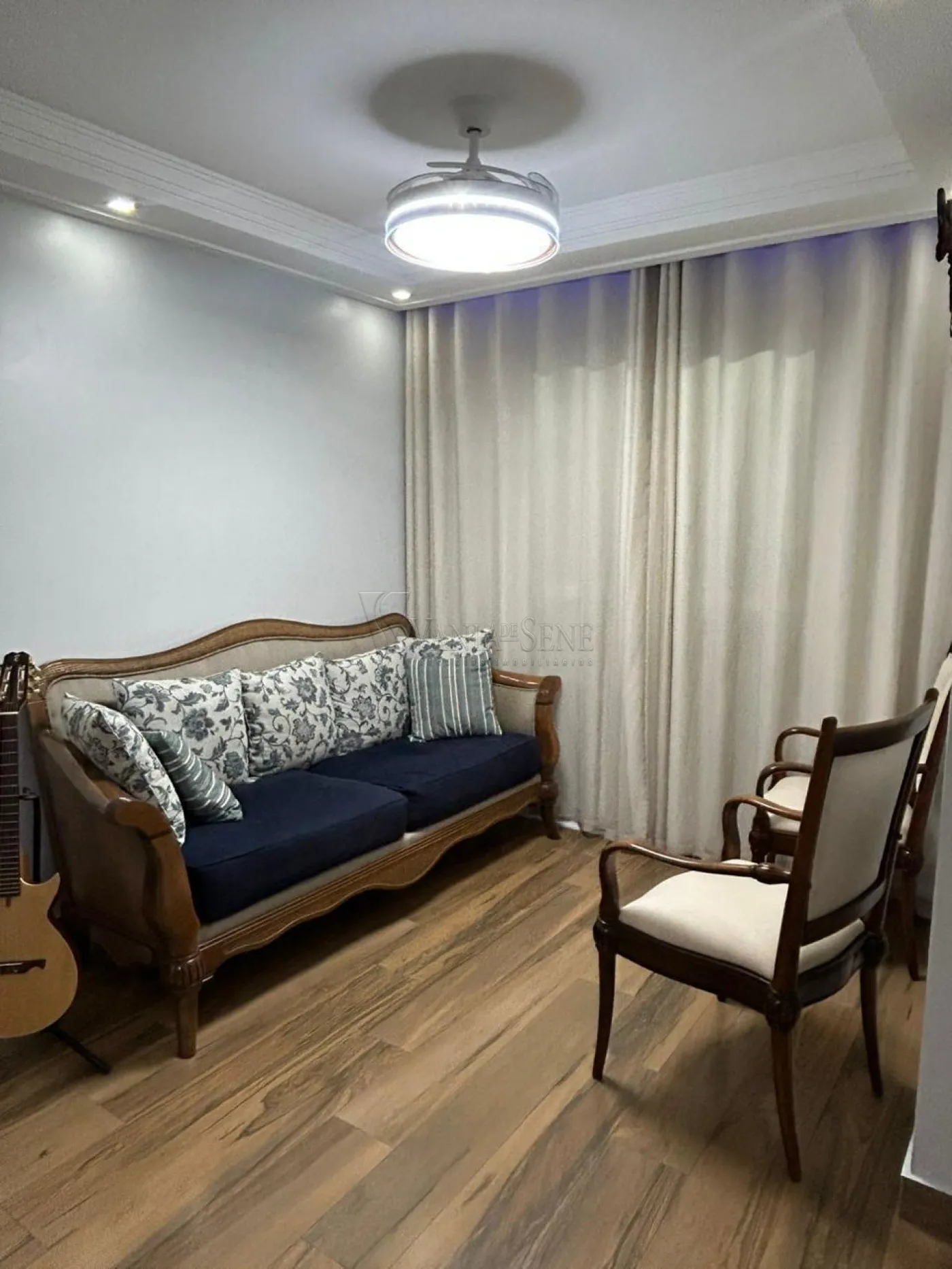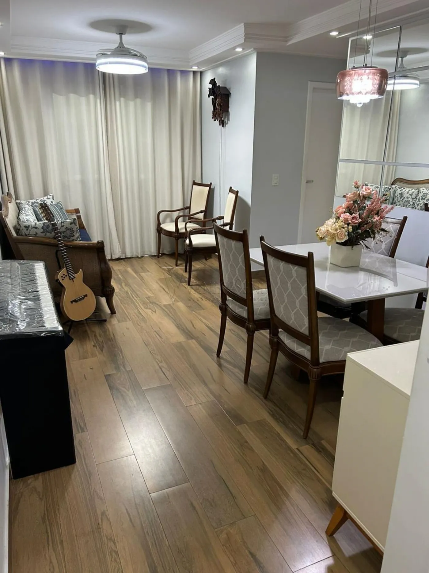 - Sala: Ampla sala em dois ambientes, equipada com ventilador de teto e sanca de gesso, criando um ambiente sofisticado e acolhedor, ideal para receber amigos e familiares.