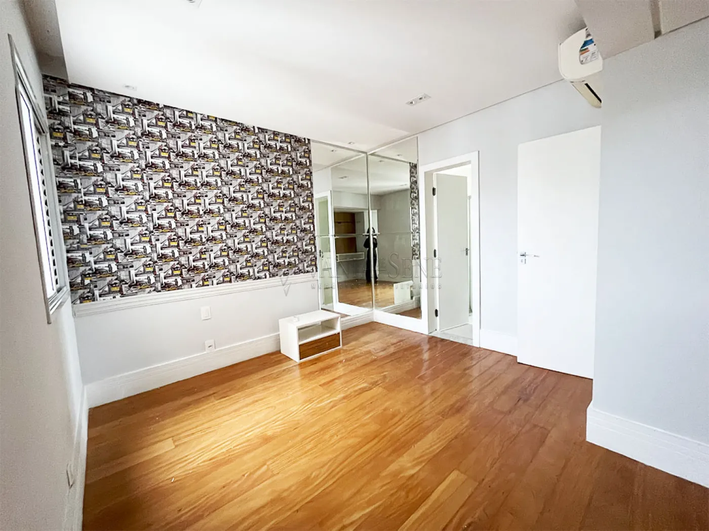 - Com ar condicionado e painel planejado, incluindo uma porta de correr para separar a área social da área intima do apartamento.