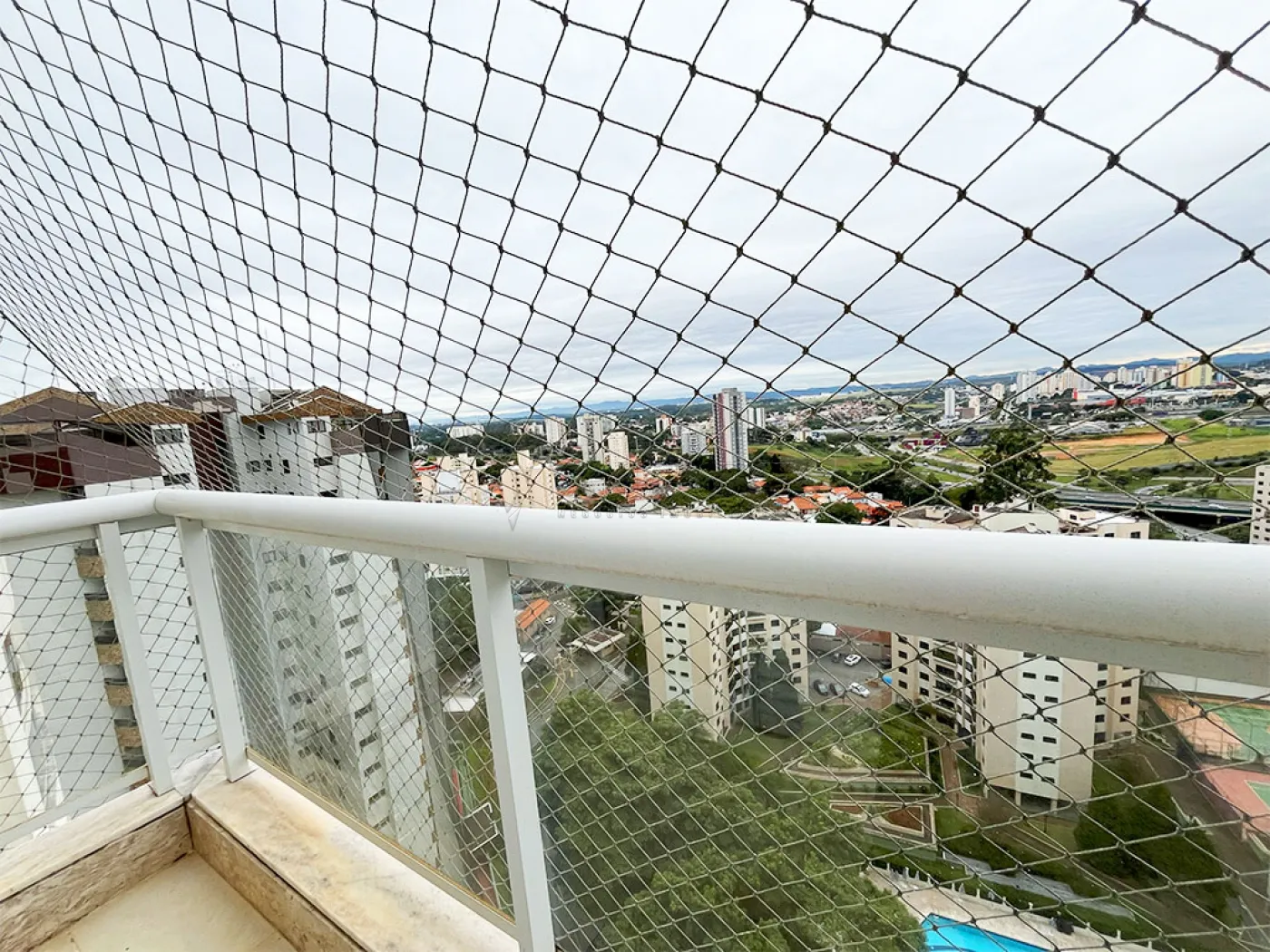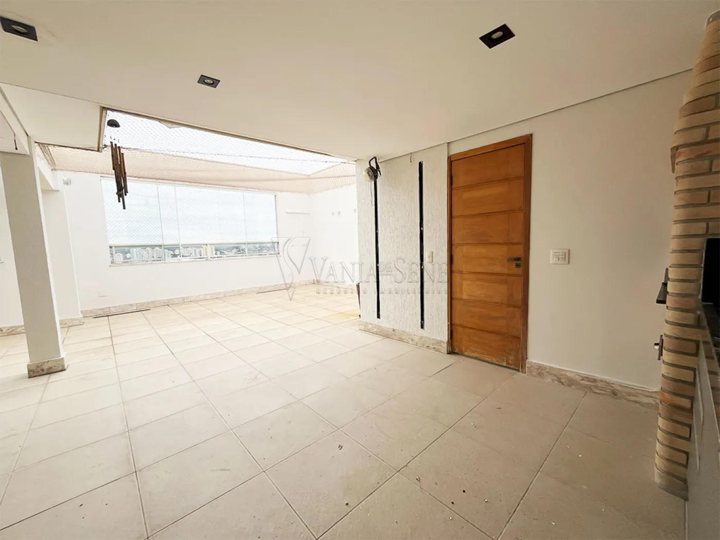 - Ampla com janelas de vidro com tela de proteção (que além de proporcionar segurança, conta com uma linda vista), conta com churrasqueira e gabinete planejado. A área se serviço é separada por uma porta da área gourmet.
