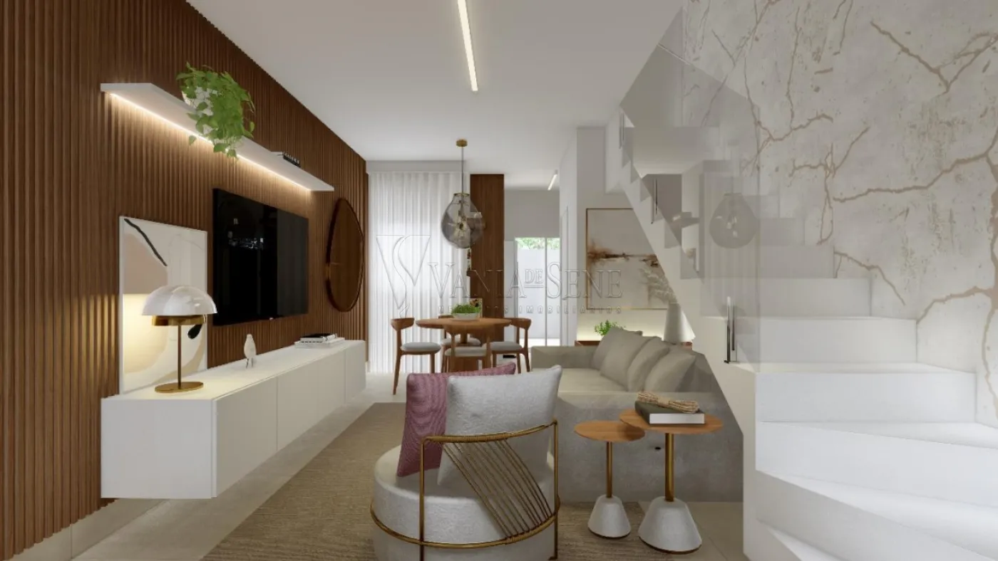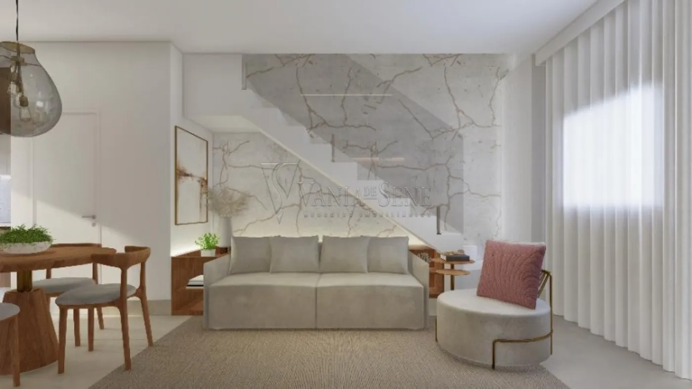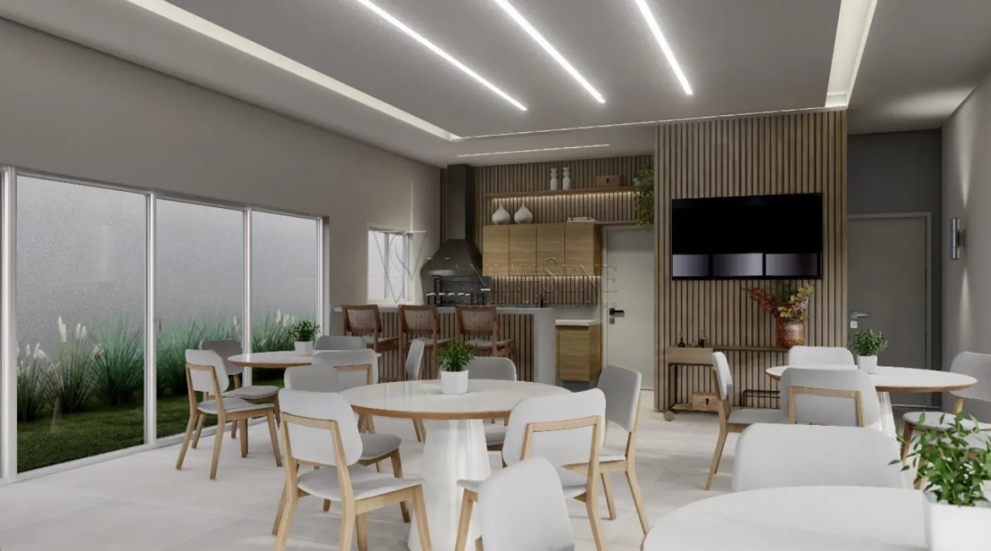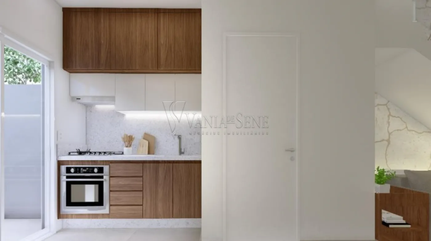 2 dormitórios, sala, cozinha, wc social, área de serviço, jardim, vaga de garagem.