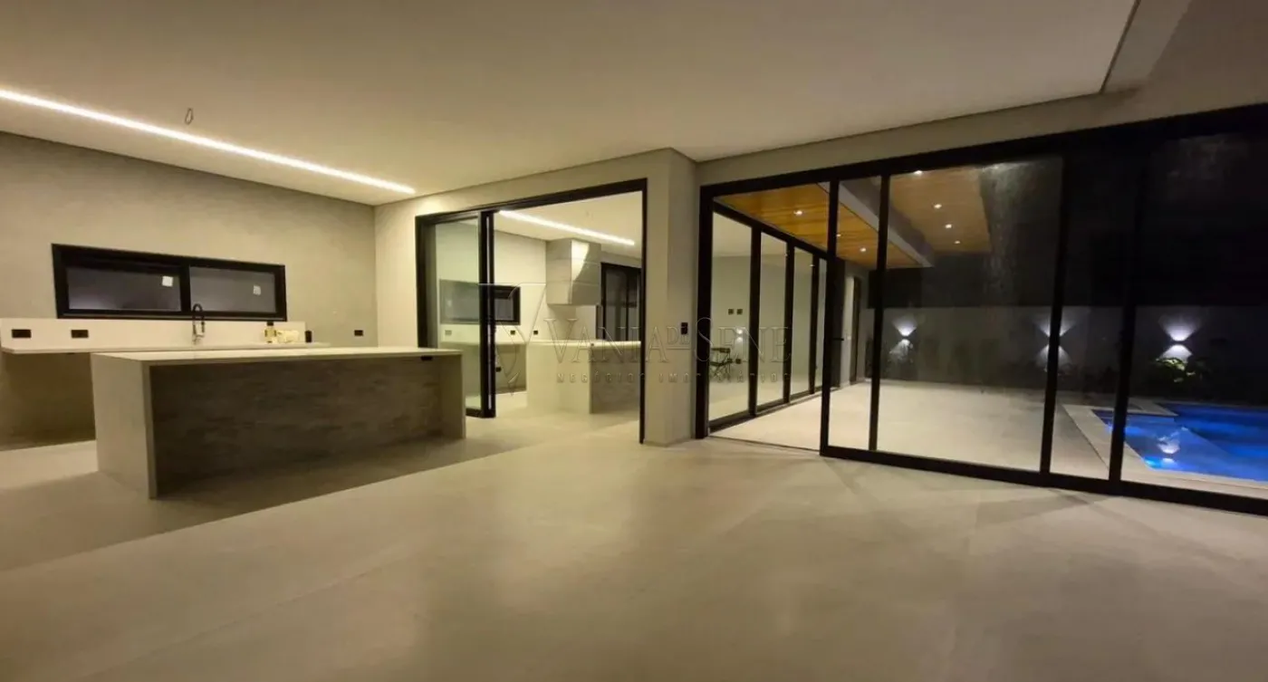 No pavimento térreo, a casa conta com sala integrada à cozinha, criando um ambiente moderno e funcional. A área gourmet é totalmente integrada com a cozinha e piscina, ideal para receber. Possui ainda despensa, área de serviço, hobby box, sauna, lavabo, banheiro de apoio para piscina e uma suíte versátil, que pode ser utilizada como sala de TV ou escritório.