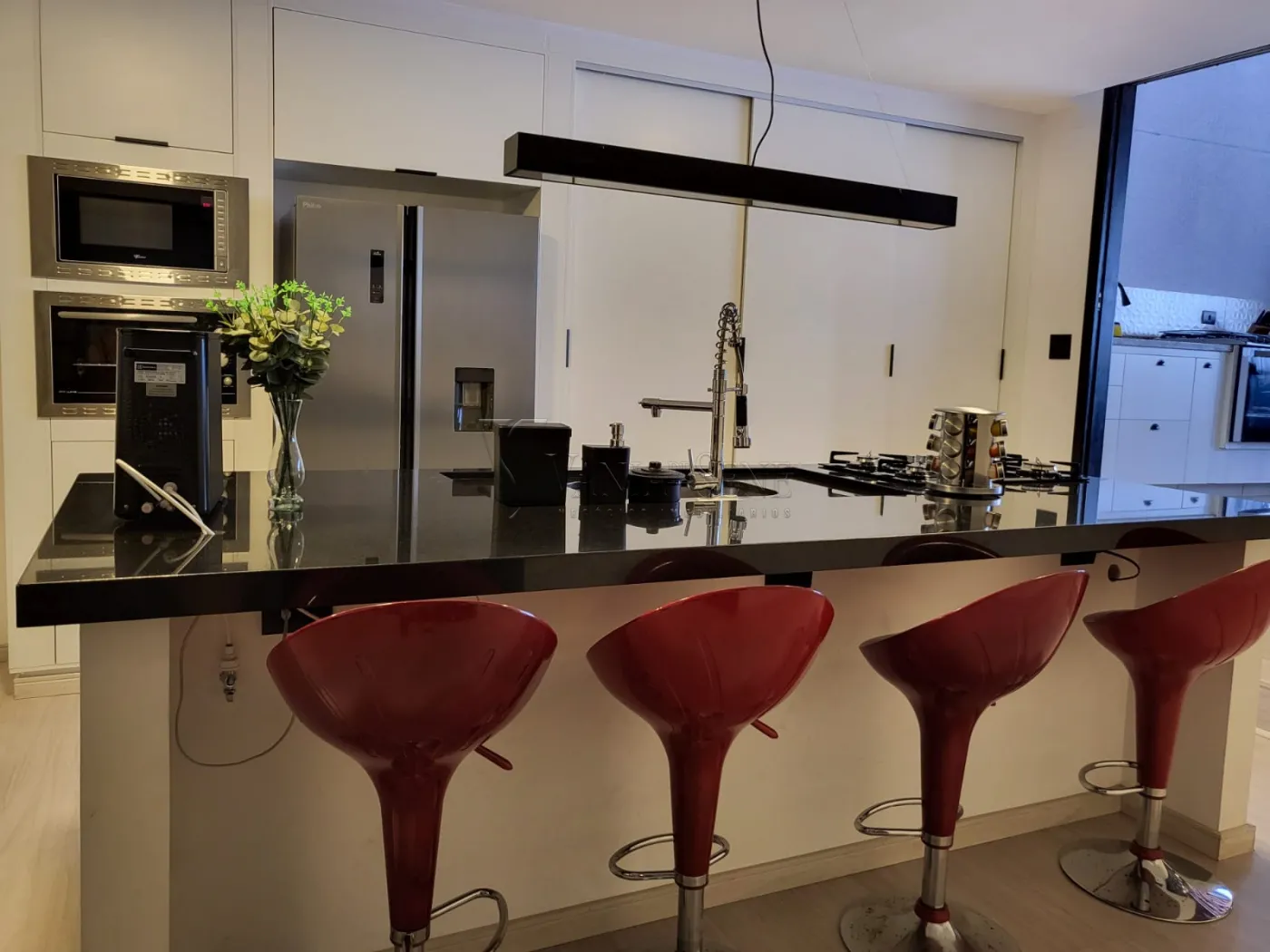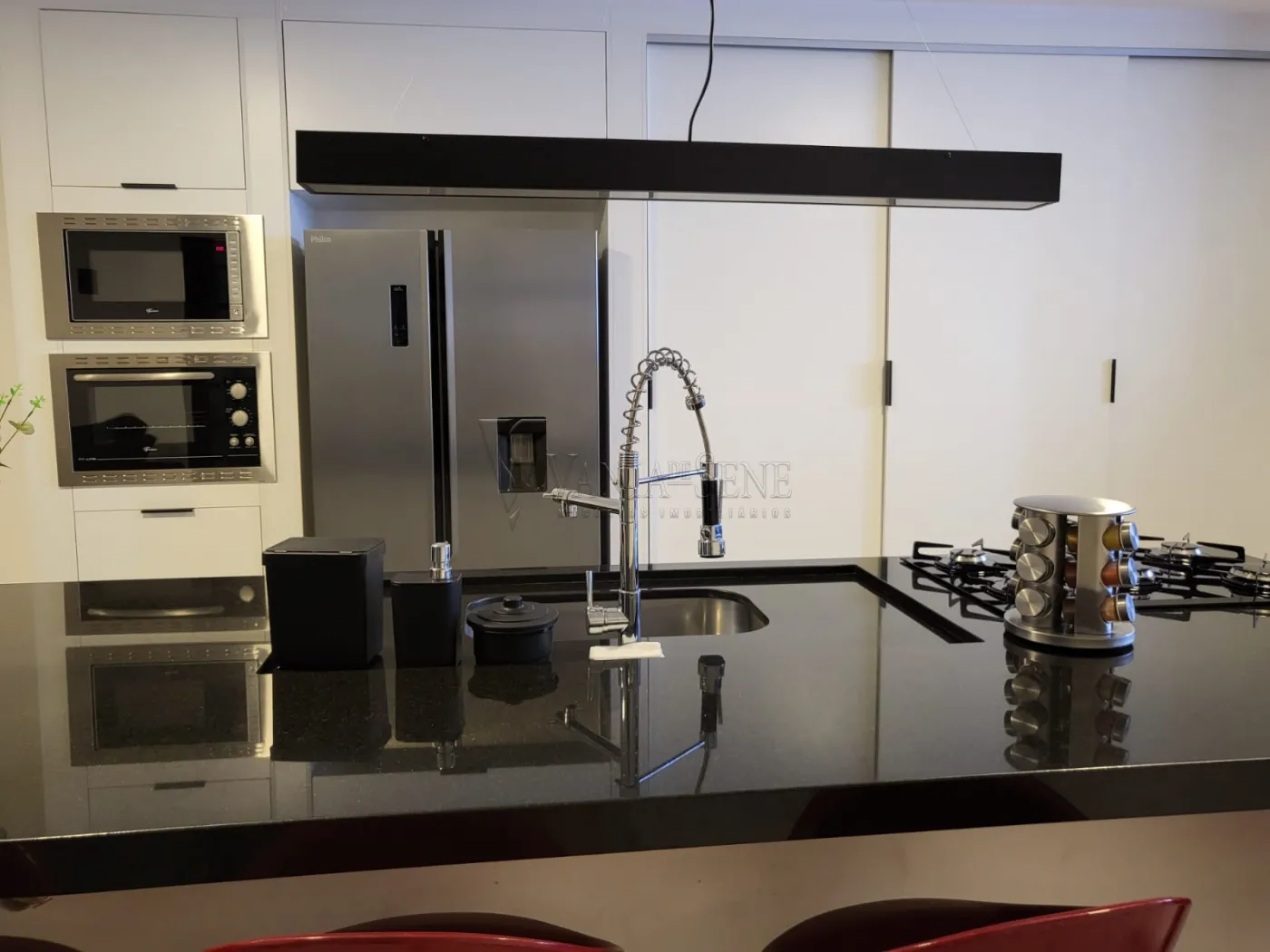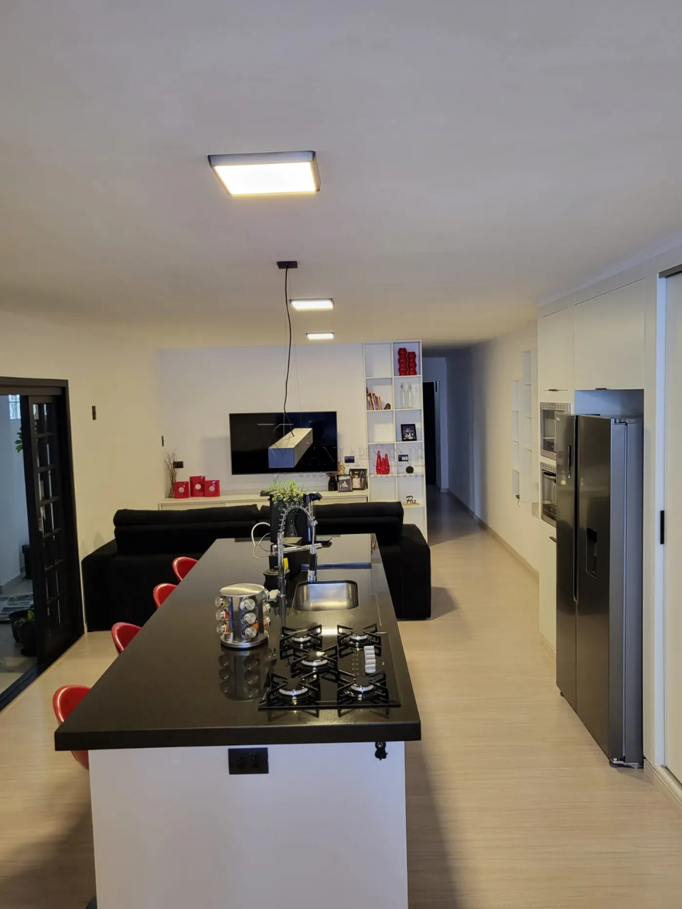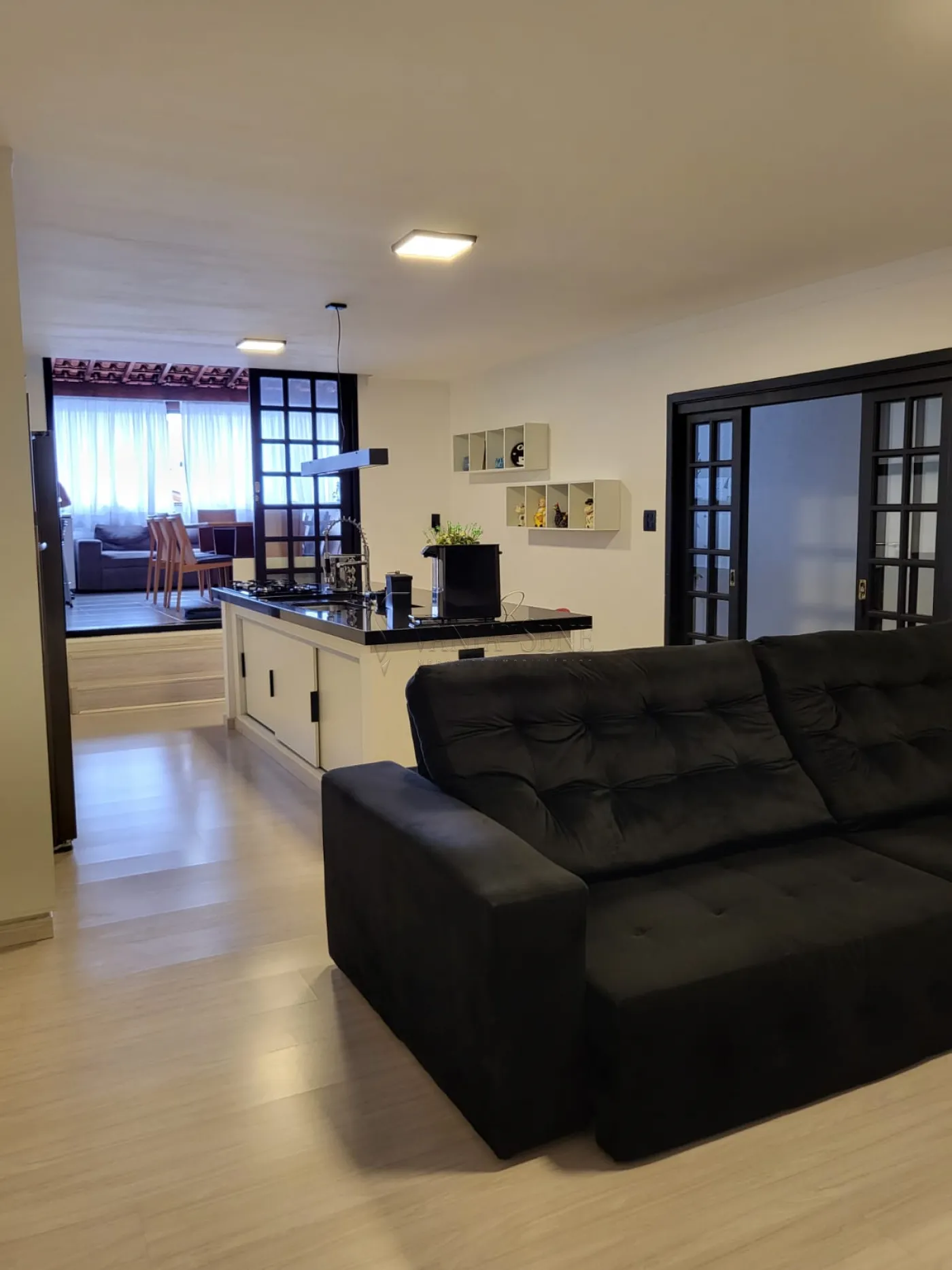 - Sala e Cozinha: A sala é ampla e iluminada, ideal para receber amigos e familiares. A cozinha é equipada com armários planejados, otimizando o espaço e tornando o dia a dia mais prático.