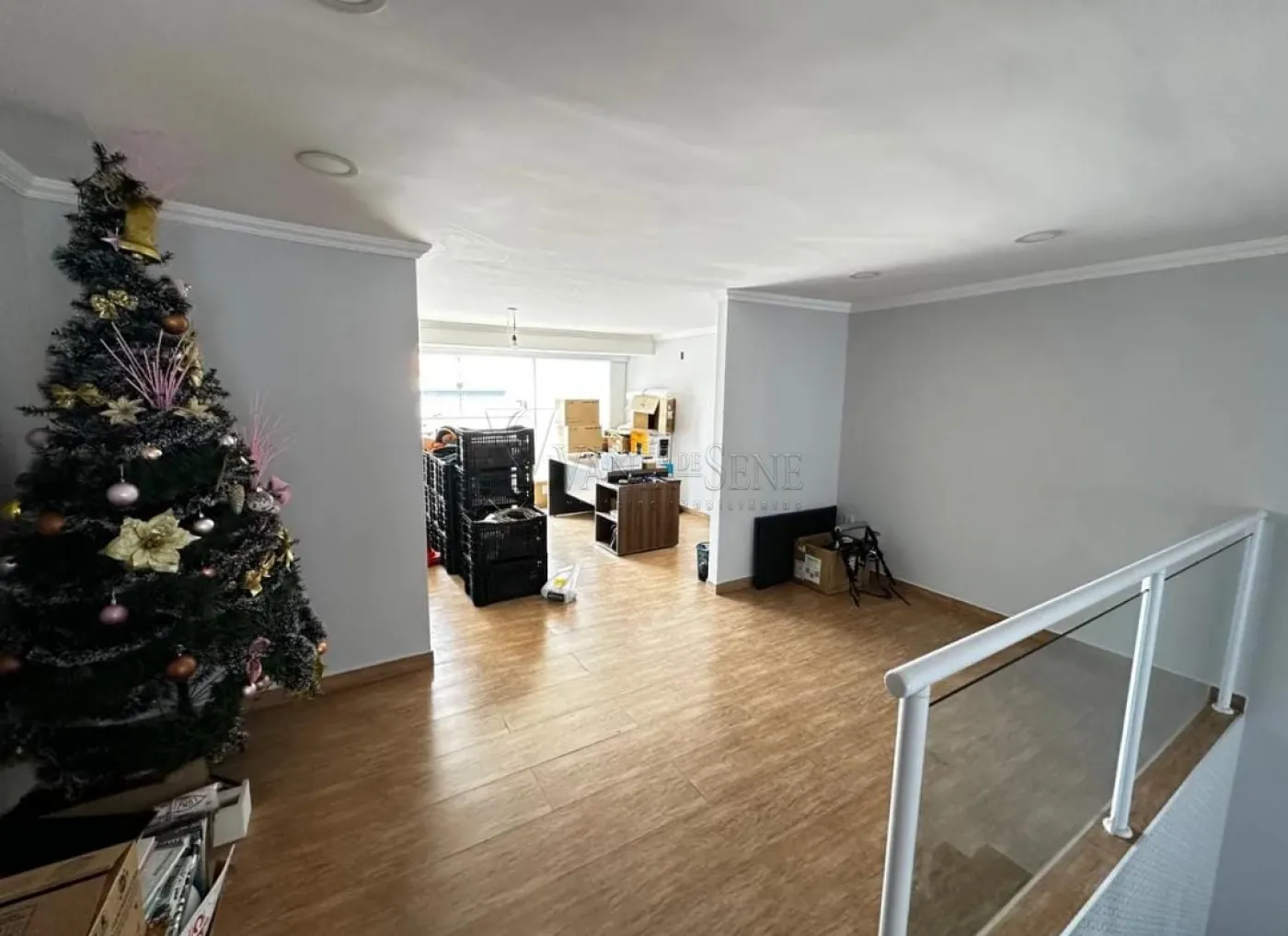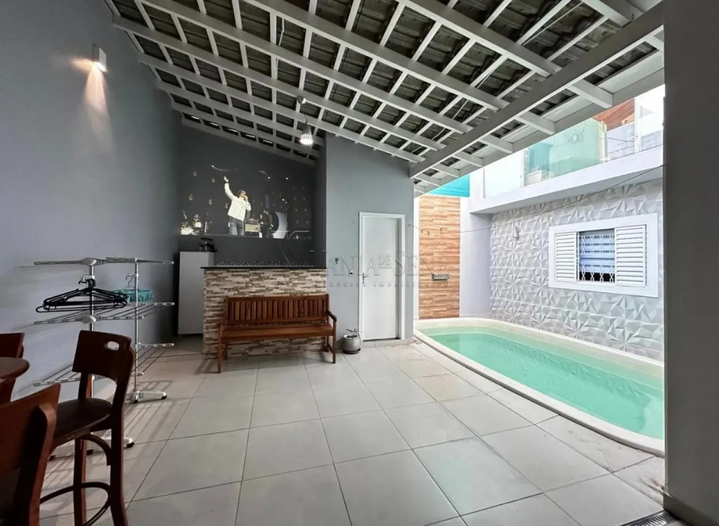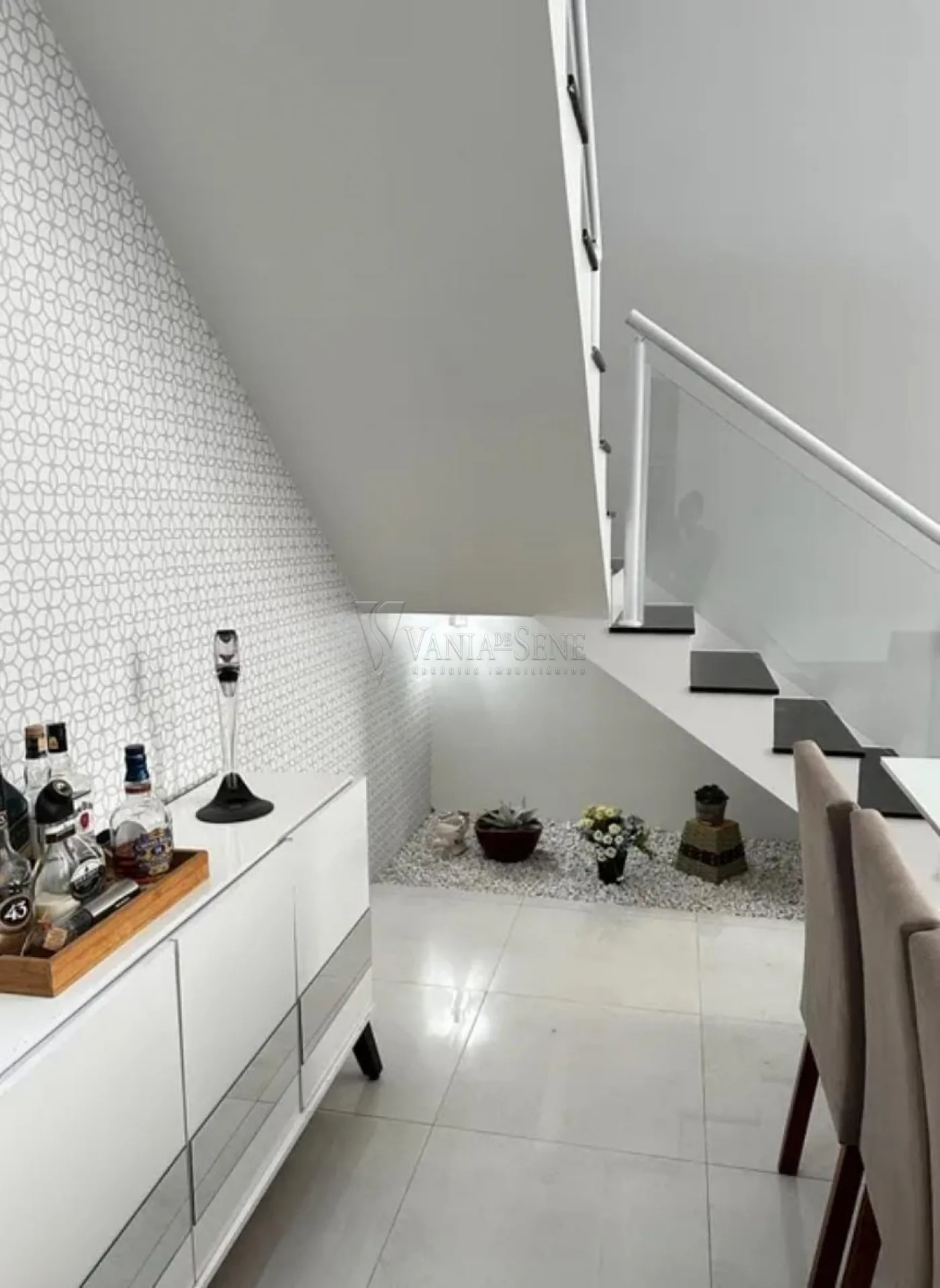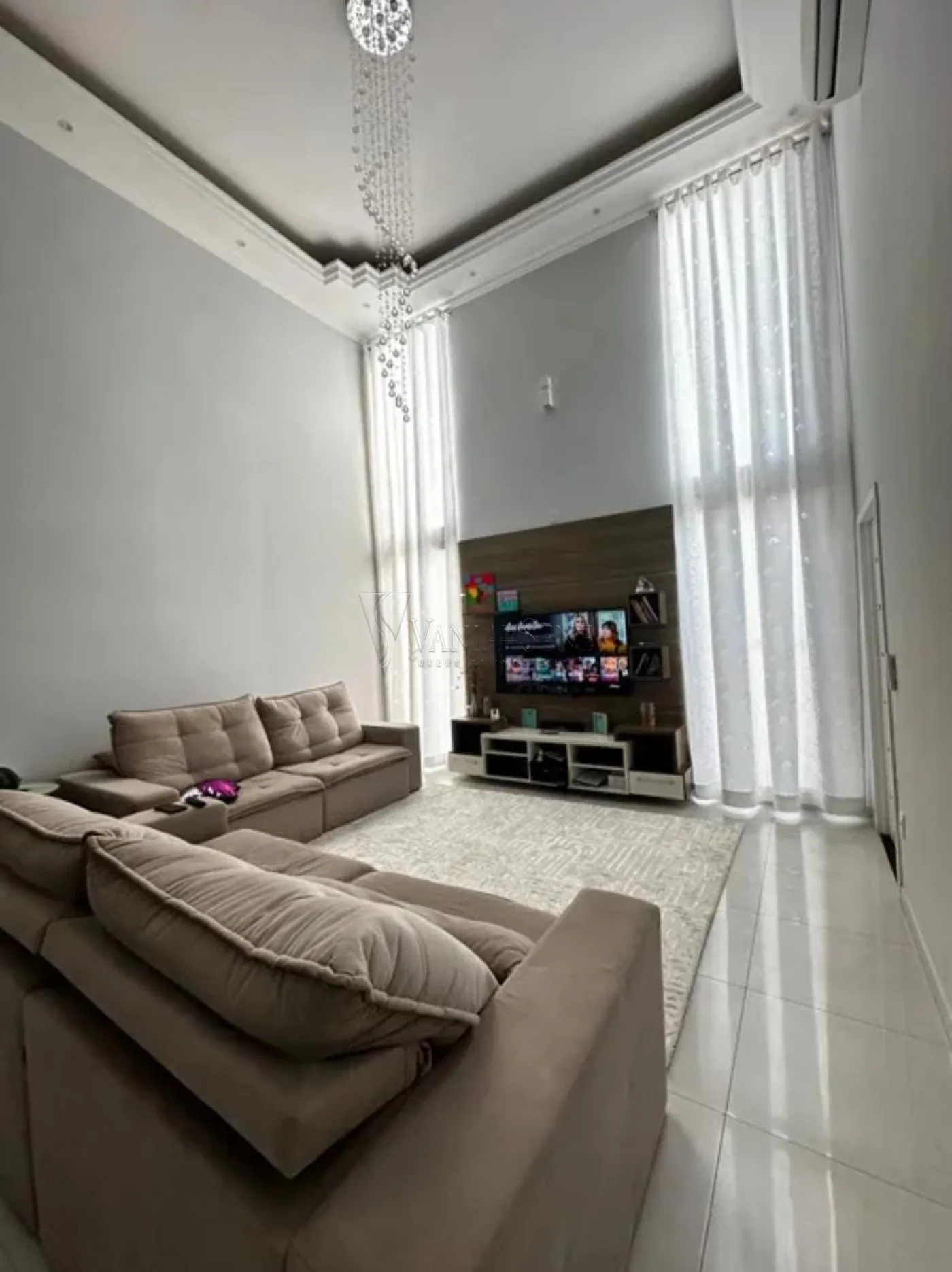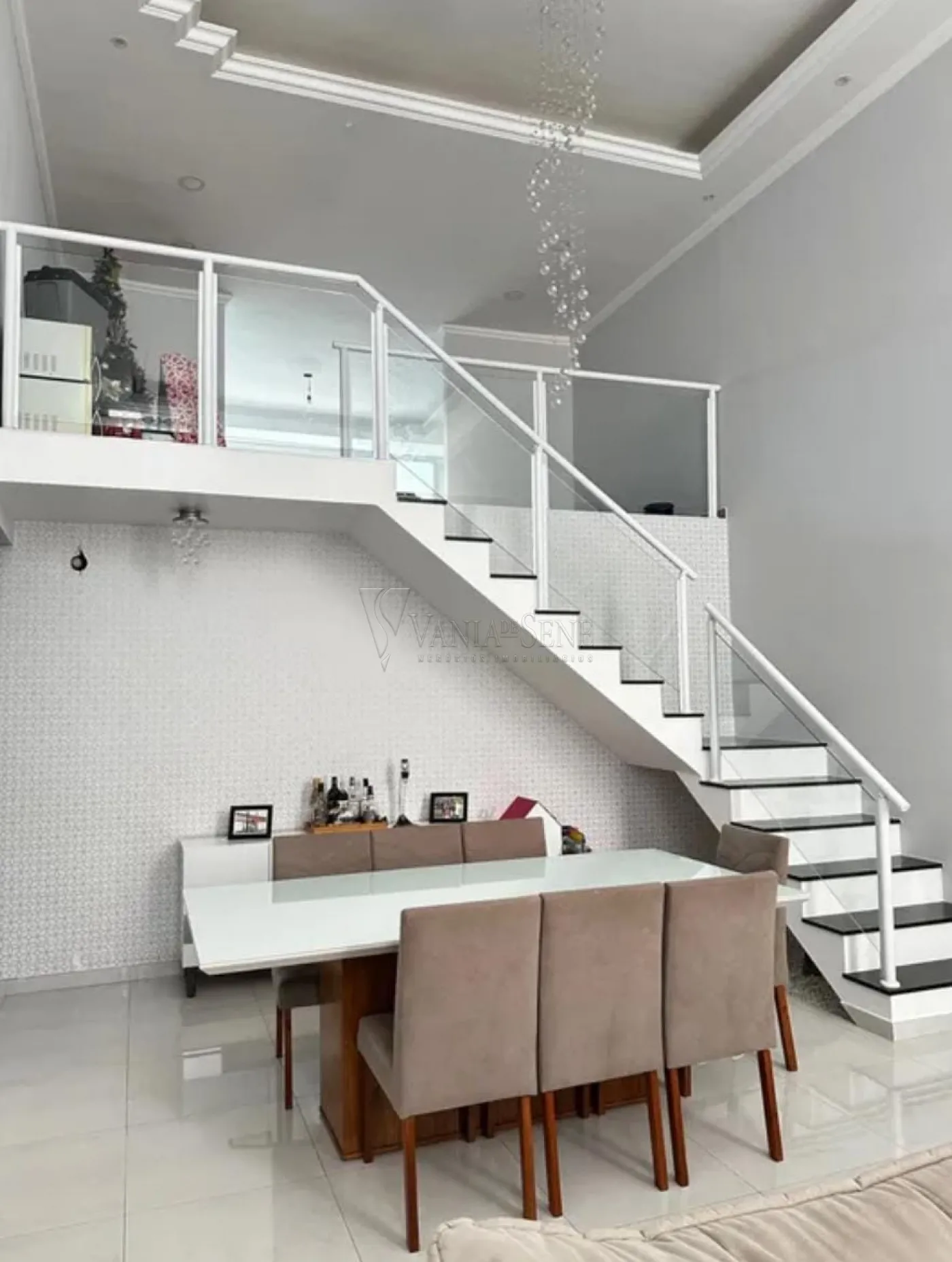 - Sala: Ampla sala de dois ambientes com pé direito duplo, proporcionando uma sensação de espaço e luminosidade.
