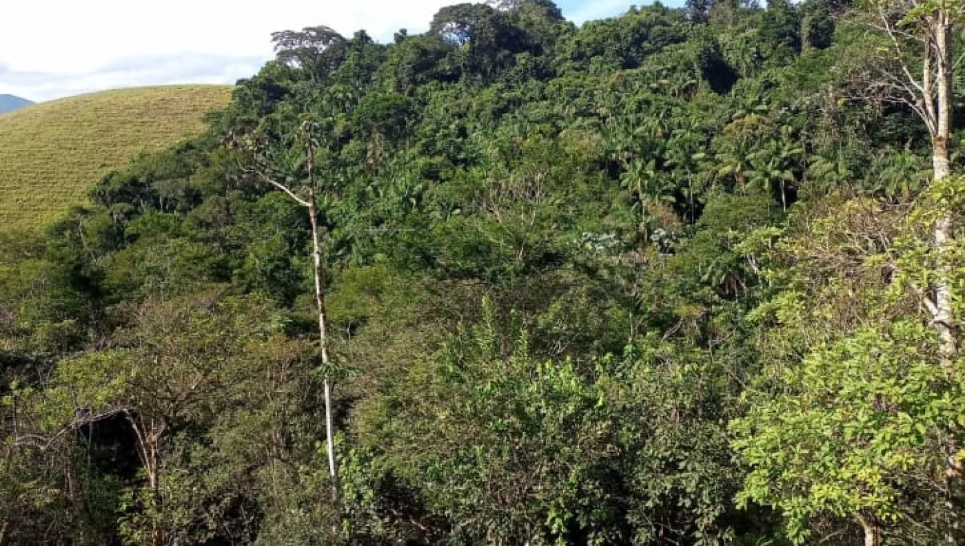 Área com mata preservada e áreas com vegetação baixa.