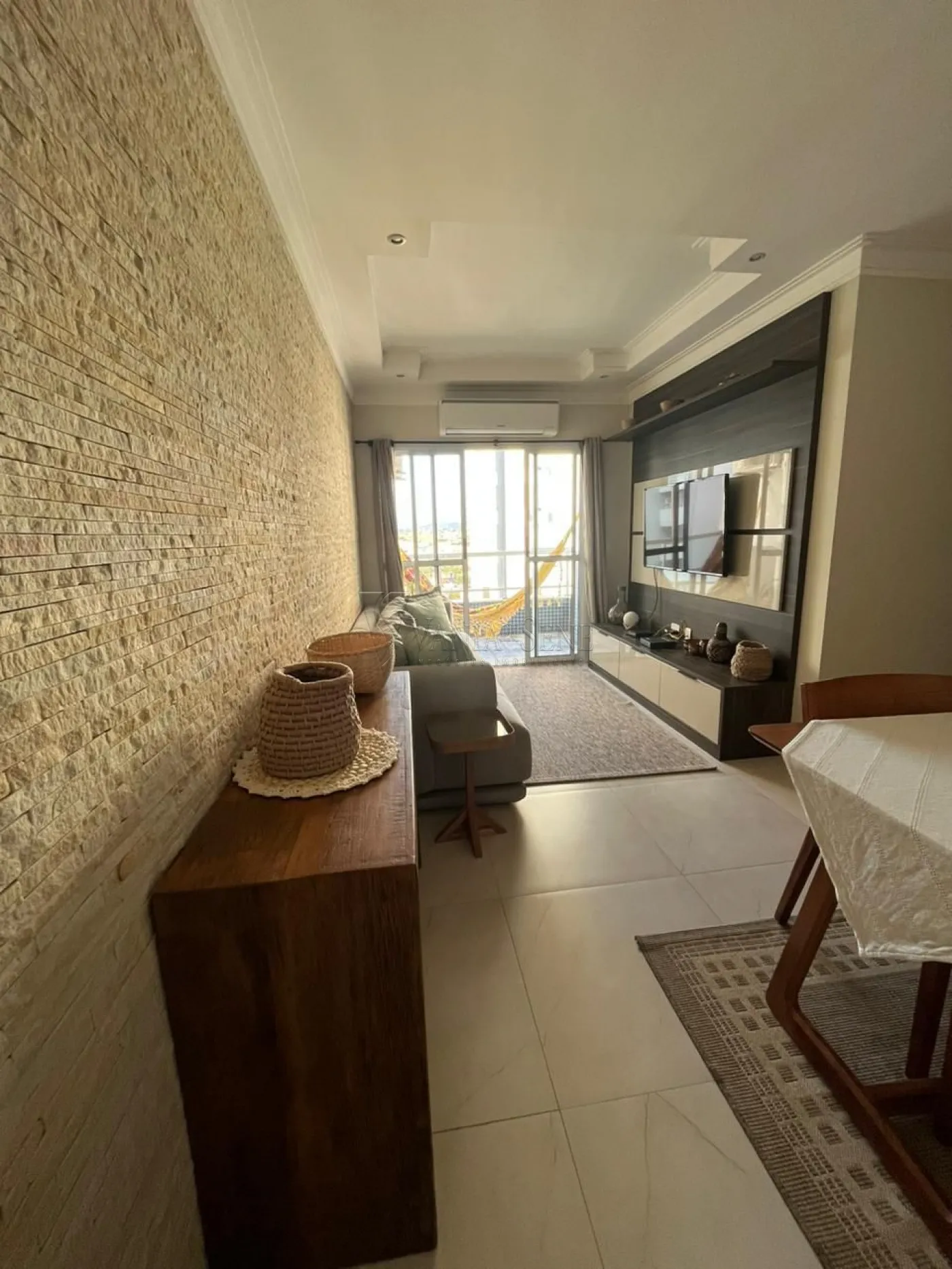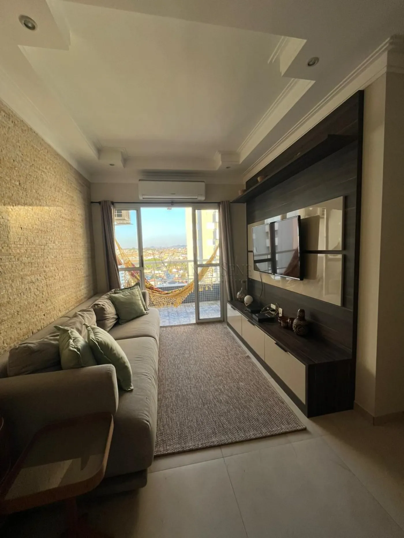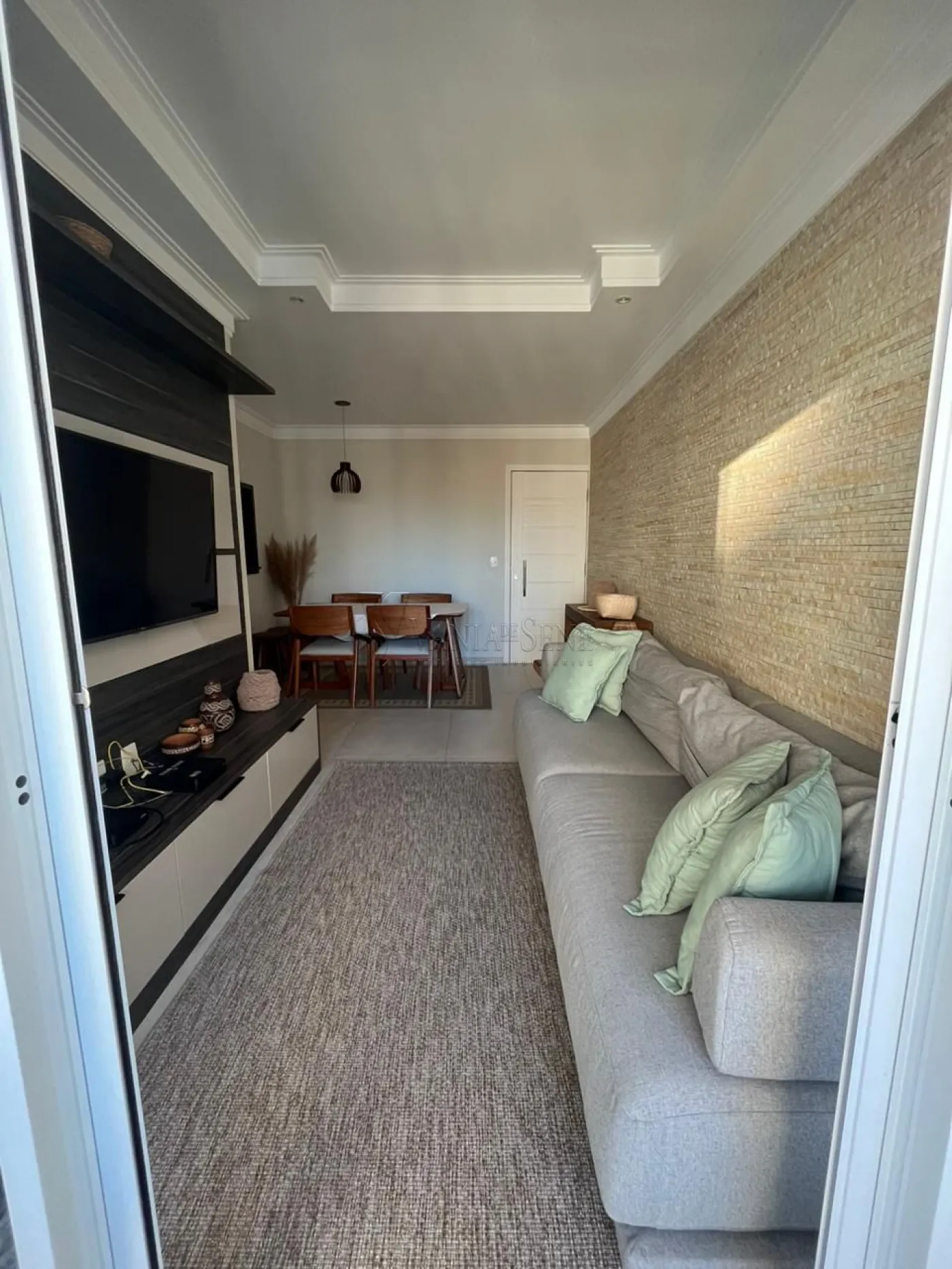- Sala ampla para 2 ambientes, decorada com pedras e sanca de gesso com iluminação em LED